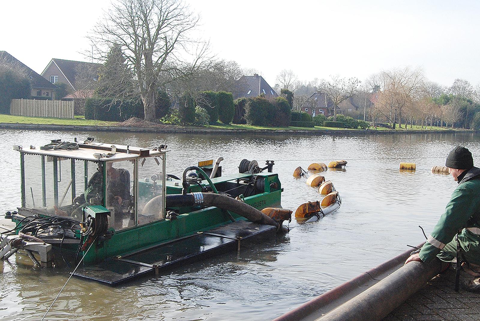 Arbeiten zur Entschlickung des Hafens Weener laufen