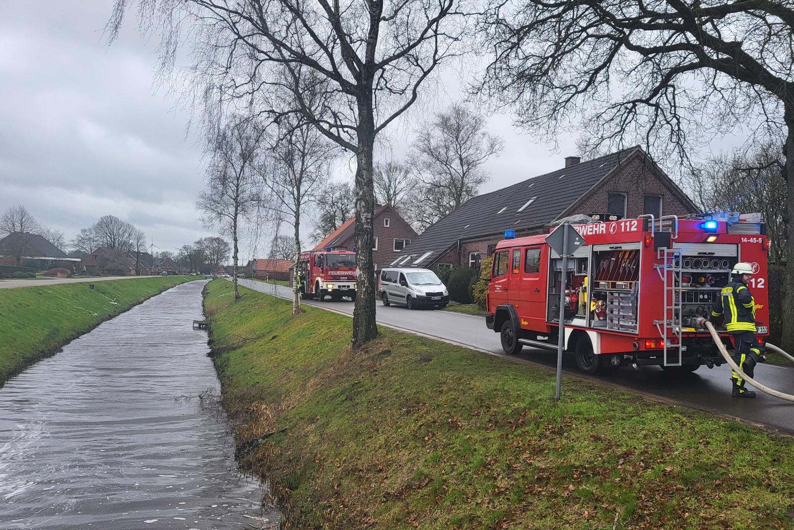 Die Feuerwehren Spetzerfehn und Holtrop rückten aus und waren rasch vor Ort. Durch ein Fenster konnten die Einsatzkräfte Flammen im Inneren des Gebäudes sehen. Sofort wurde eine Wasserversorgung aufgebaut und ein Zugang ins Gebäude geschaffen. Mehrere Trupps der Feuerwehr gingen unter Atemschutz vor. Mit einem C-Rohr konnte das Feuer, das sich als brennender Haufen aus Holz und Unrat erwies, schnell gelöscht werden. Da nicht bekannt war, ob sich noch Menschen im Gebäude aufhielten, wurde das Haus parallel von einem weiteren Trupp abgesucht – schließlich ergebnislos.