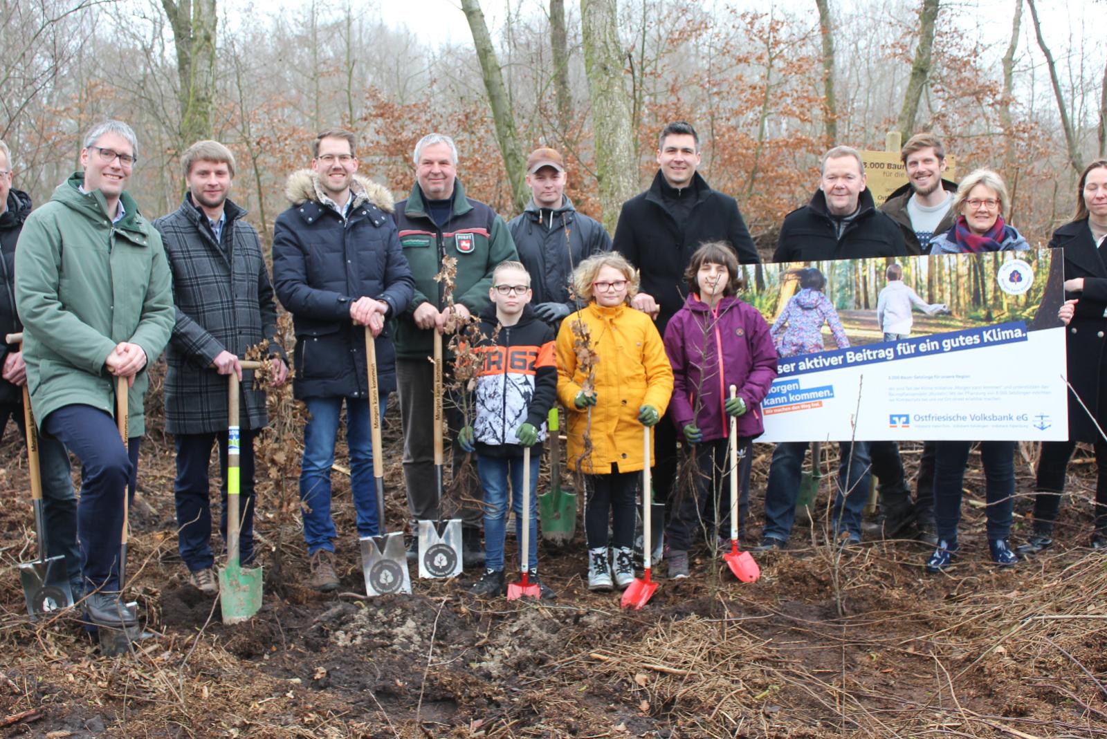 Ostfriesische Volksbank spendet 3000 Bäume für Aufforstung in Holthusen – Erster Spatenstich mit vielen Beteiligten
