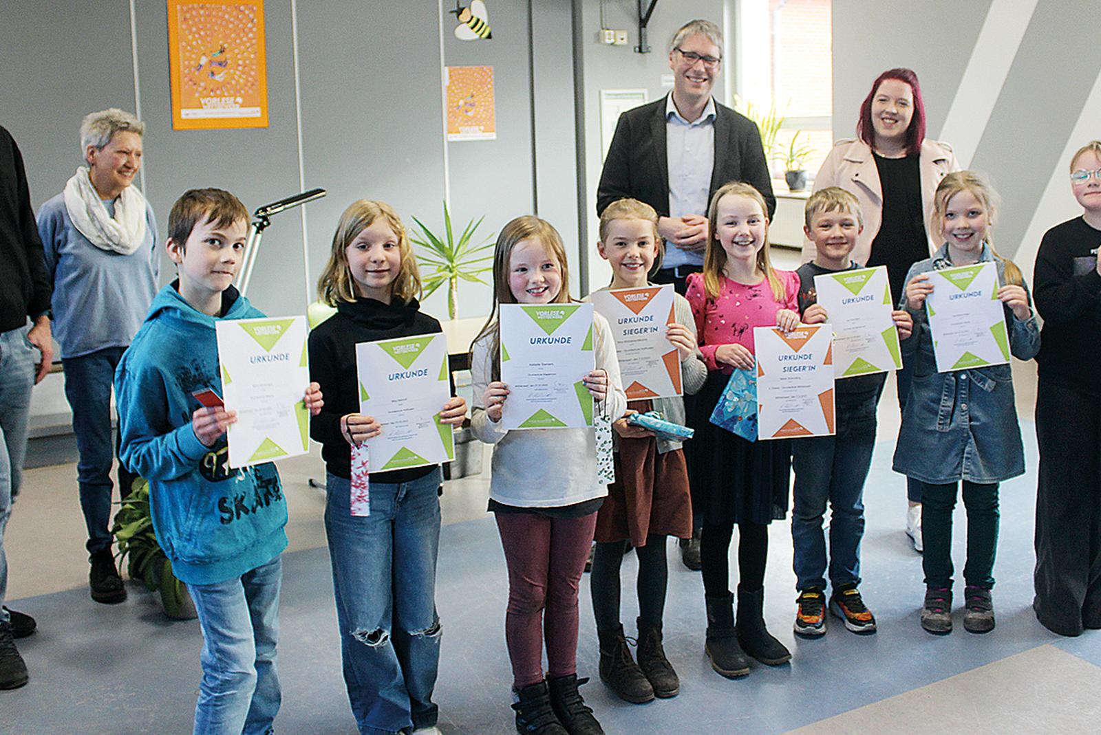 Mira Wübbena- Mecima und Marie Streunding waren sichtlich stolz: Die beiden Schülerinnen waren am Dienstagnachmittag die strahlenden Siegerinnen des Stadtentscheides des Vorlesewettbewerbs der Grundschulen im Weeneraner Stadtgebiet.