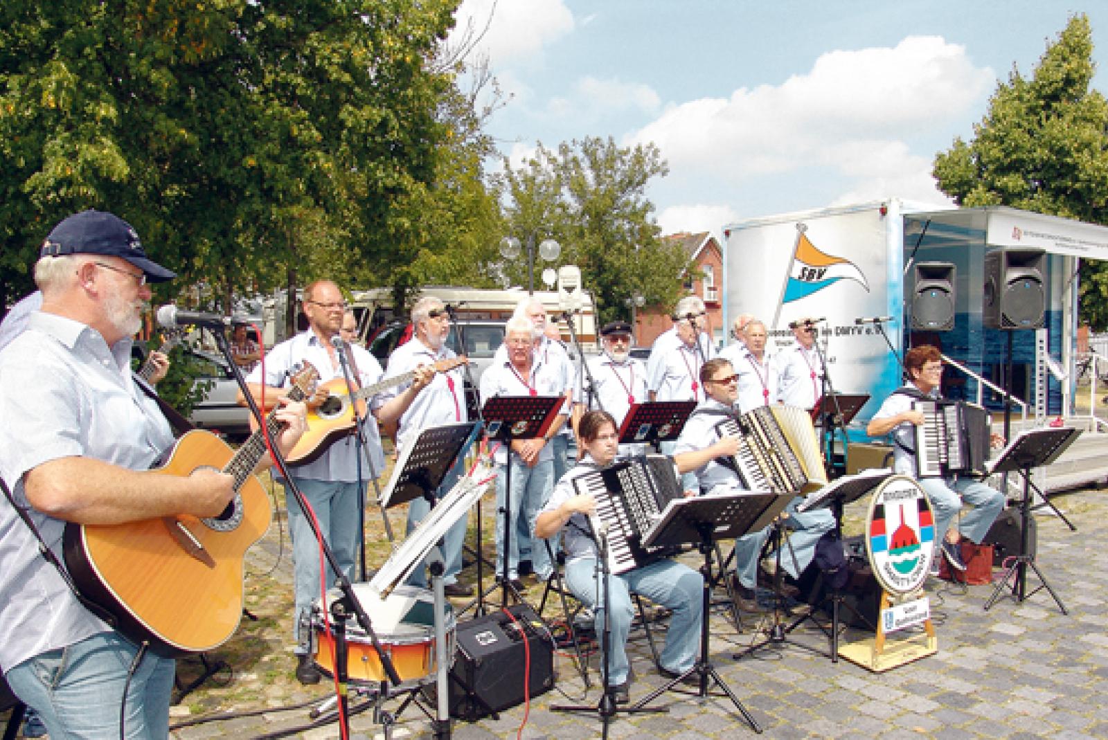 Zur Eröffnung von »Leer maritim« sorgte der Bingumer Shanty-Chor für Stimmung am Hafen. © Fotos: Boelmann