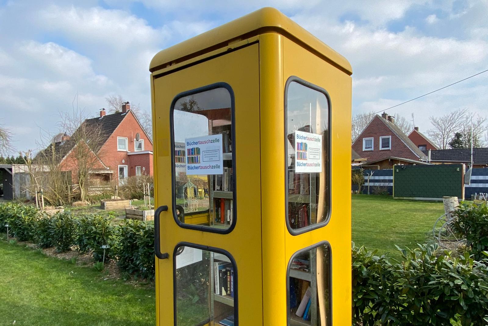 Ein unbekannter Täter hat die als öffentlichen Bücherschrank genutzte Telefonzelle am Rathaus in Westrhauderfehn beschädigt.