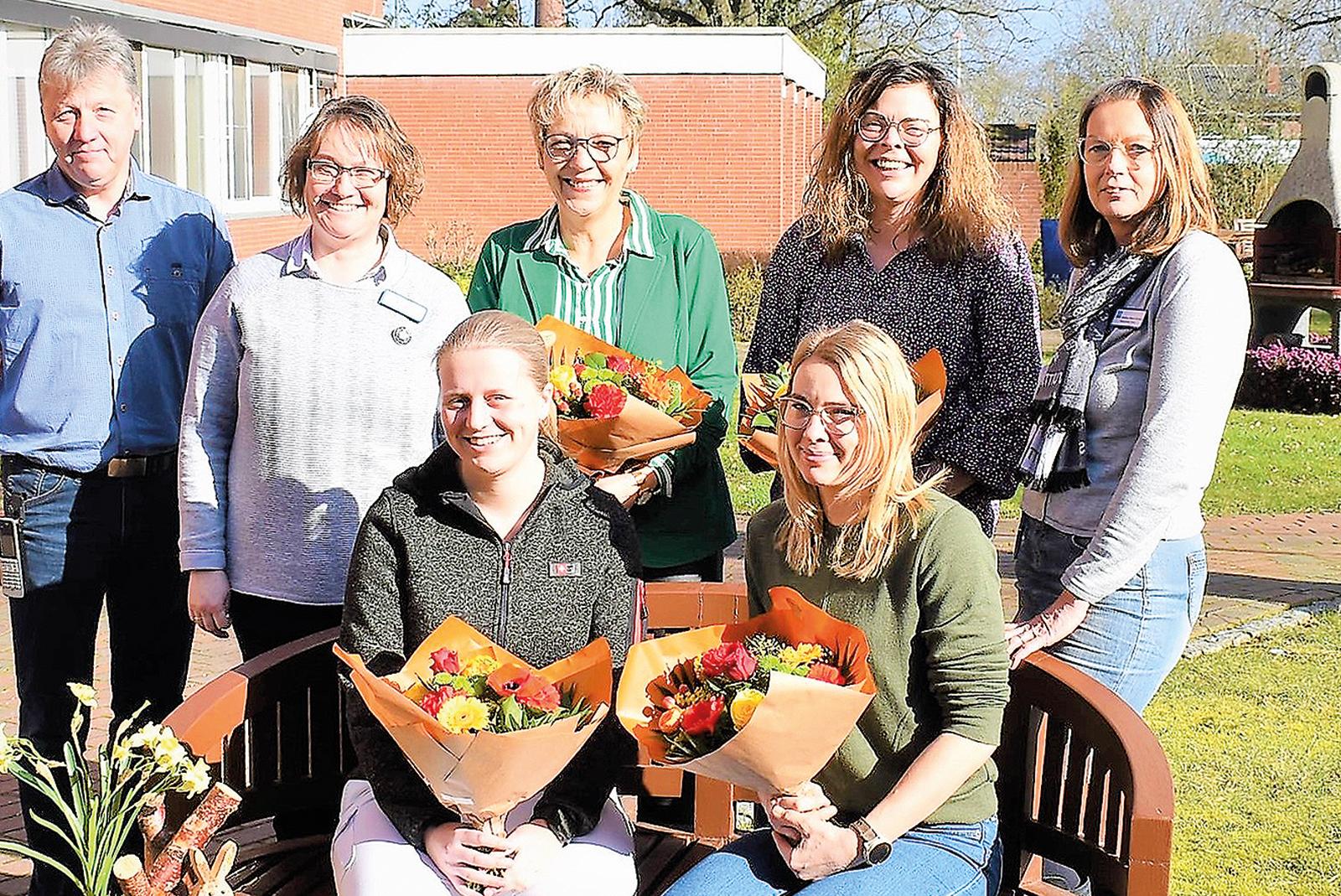 Svenja Krüger und Anke Müller, beide arbeiten im Altenzentrum Rheiderland, haben ihre berufspädagogische Zusatzqualifikation zur Praxisanleitung erworben. Annegret van Anken und Christina Kuper haben an der Qualifizierung zur Betreuungskraft teilgenommen. Im Bild stehend von ...