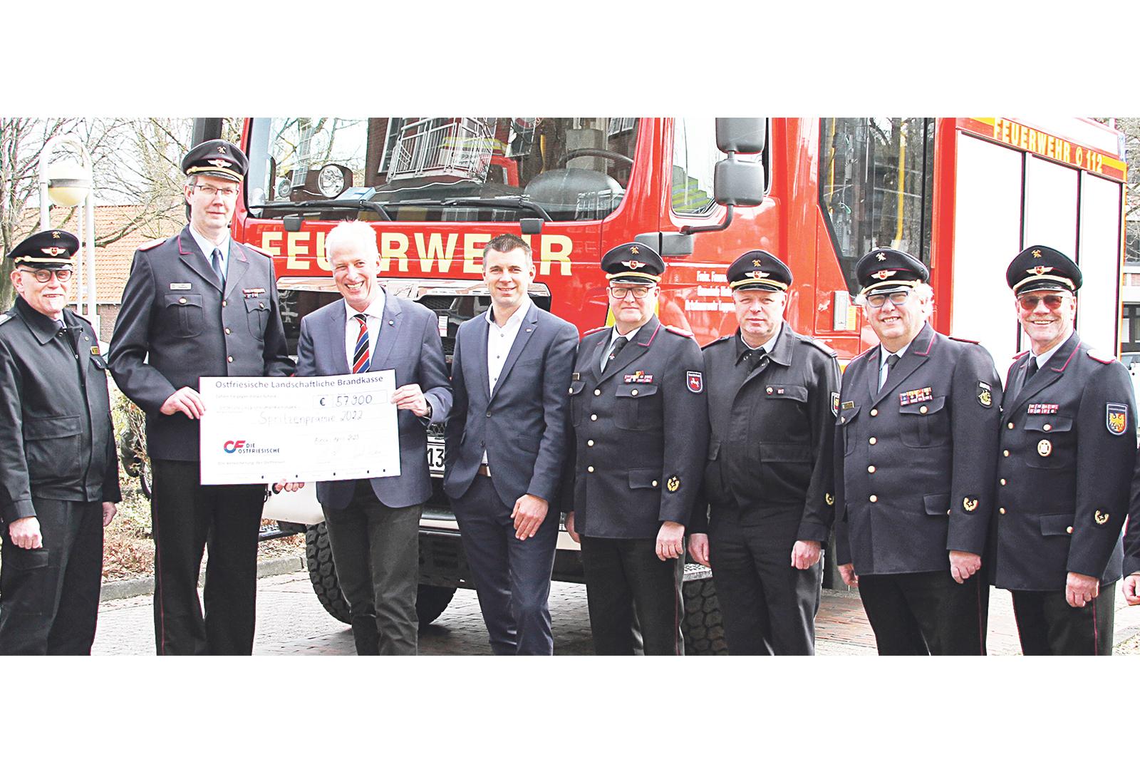 Rund 11.000 Feuerwehrleute gibt es in den ostfriesischen Wehren. Die Ostfriesische Landschaftliche Brandkasse unterstützt sie unter anderem mit jährlich gezahlten sogenannten »Spritzenprämien« für ihre ehrenamtlichen Einsätze. Die gezahlte Summe richtet sich nach den Ausstattungen der jeweiligen ...