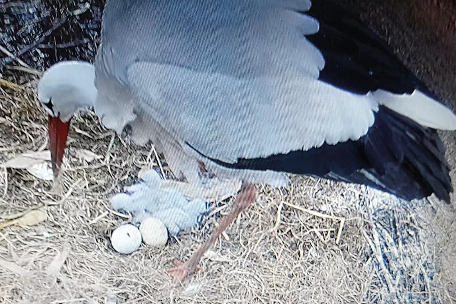 In Storchen-Nestern knacken die Eierschalen