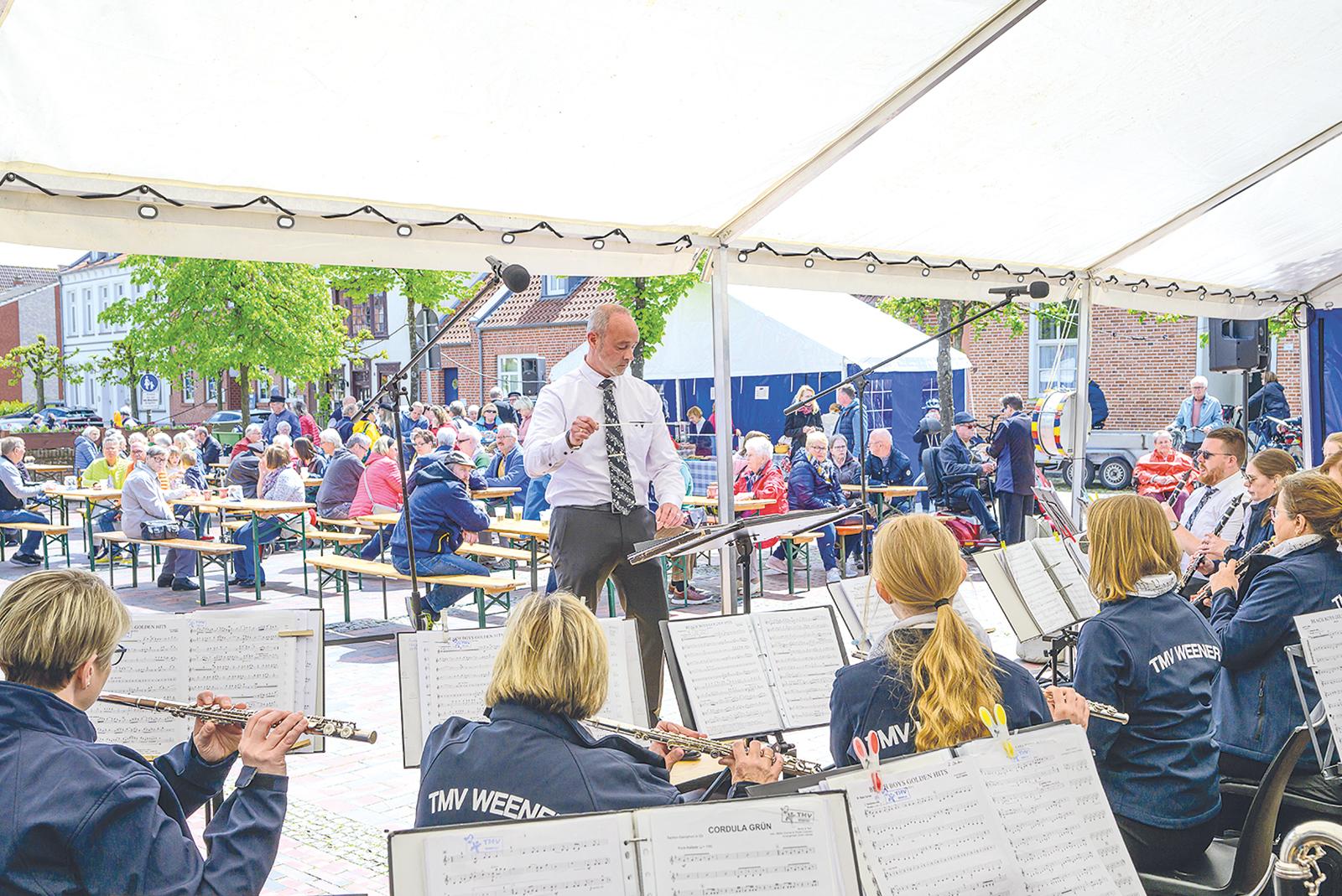 Welch eine Farbenpracht mit bunt blühenden Blumen am Alten Hafen in Weener. Am Himmelfahrtstag hätte es für den TurnerMusikVerein (TMV) Weener nicht besser laufen können.