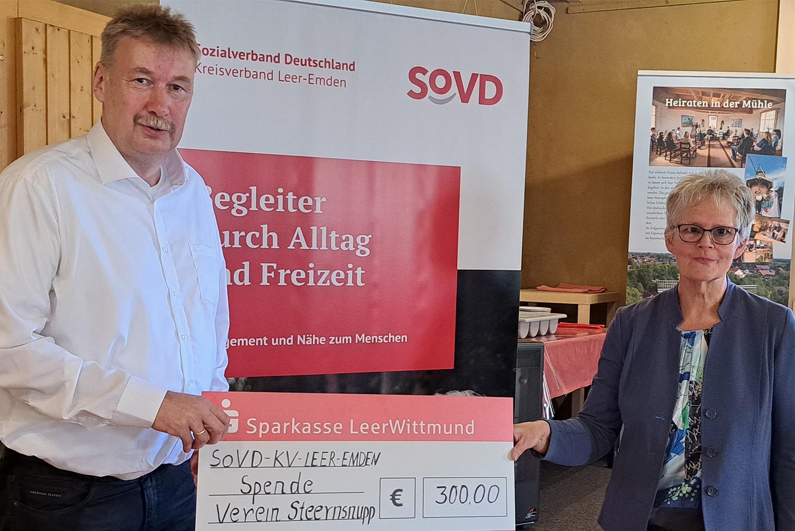 Mit einer Spende von 300 Euro unterstützt der Kreisverband Leer-Emden des Sozialverbandes Deutschland die Arbeit des Vereins »Steernsnupp«. Sein Vorsitzender Ernst Berends aus Weener stellte beim Frühlingstreff des Sozialverbandes in der Mühle in Neermoor den Vorstandsmitgliedern aus dem ...