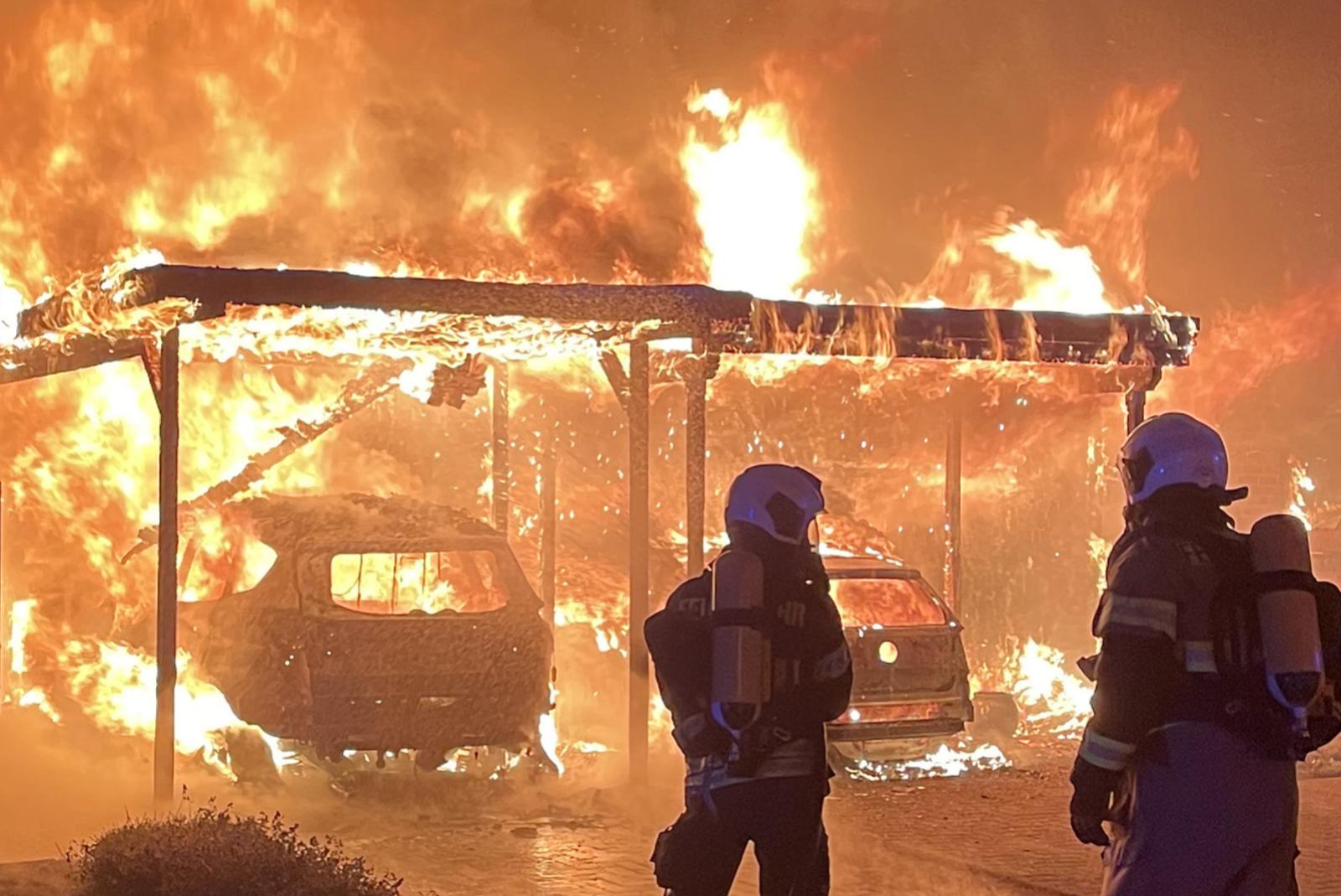 In Aurich-Egels sind am Donnerstagabend zwei Carports in Brand geraten. Das teilt die Feuerwehr mit. Bei der Leitstelle in Wittmund ging die Meldung des Feuers gegen 22.45 Uhr ein. Als die Einsatzkräfte am Brandort eintrafen, standen die beiden Carports und die darunter stehenden Fahrzeuge bereits in Vollbrand. Die Flammen griffen im weiteren Verlauf auf ein angrenzendes Einfamilienhaus und eine Doppelhaushälfte über.