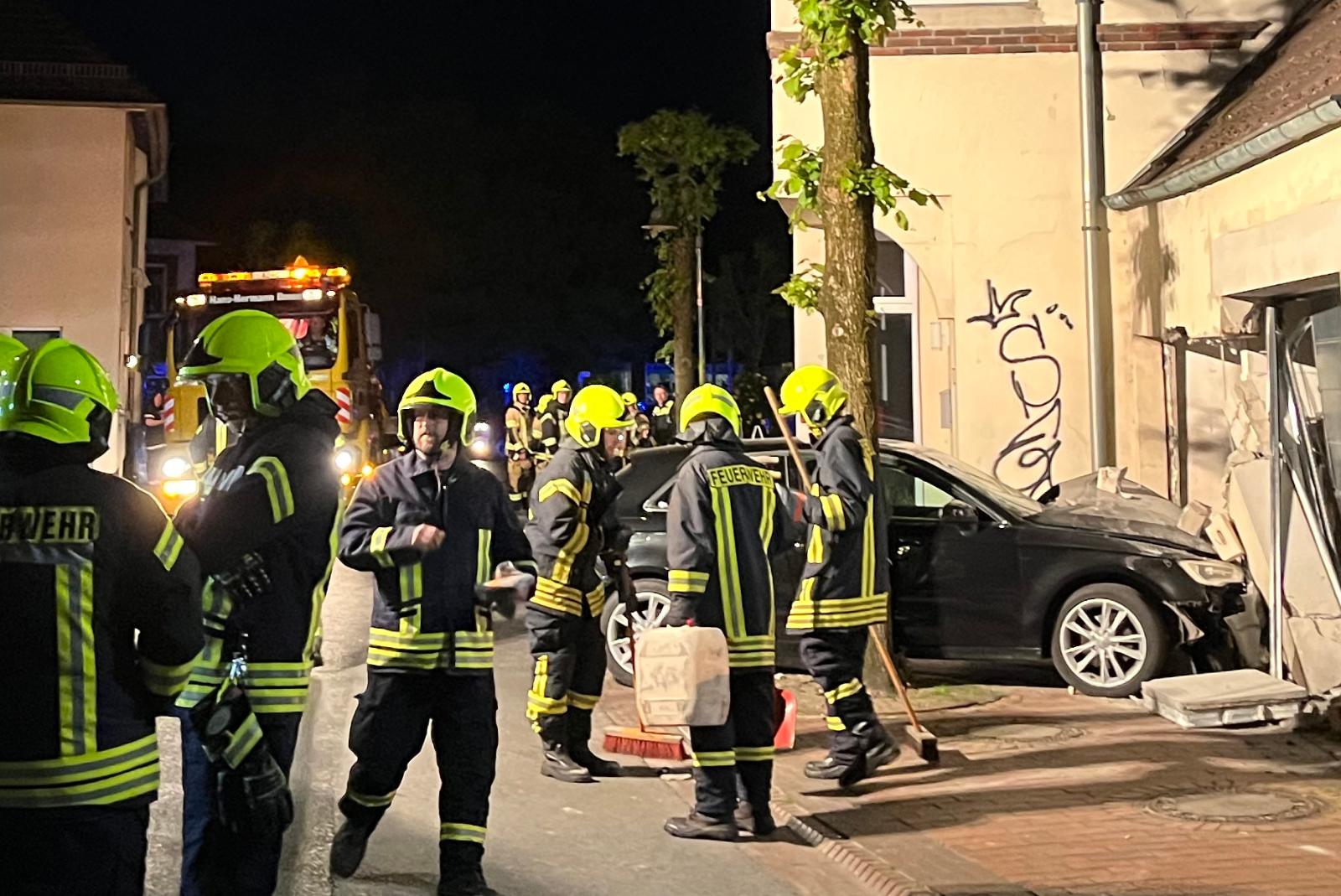 In Marienhafe ist am späten Sonntagabend ein Auto in ein Geschäftshaus gekracht. Sowohl das Fahrzeug, als auch das Gebäude wurden dabei stark beschädigt. Die 20-jährige Fahrerin des Audi hatte laut Polizei offenbar die Kontrolle über ihr Fahrzeug verloren. Sie und ihre 19-jährige Beifahrerin wurden bei dem Unfall leicht verletzt. Der Rettungsdienst brachte sie ins Krankenhaus. Der entstandene Sachschaden liegt ersten Schätzungen zufolge im fünfstelligen Euro-Bereich.