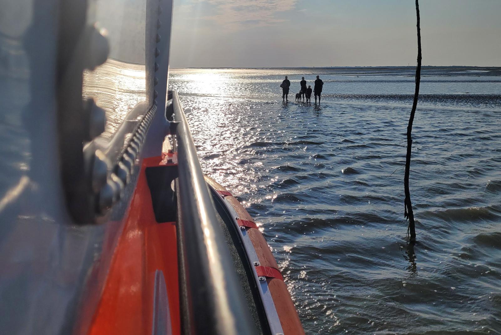 "Bereits wenig später fand die Freiwilligen-Besatzung die Wattwanderer. Ein Seenotretter brachte zu Fuß eine Leine zu der Frau, den beiden Männern und dem sechsjährigen Mädchen und sicherte sie auf dem kurzen Weg zum Seenotrettungsboot ab", so die DGzRS in ihrer Mitteilung.
