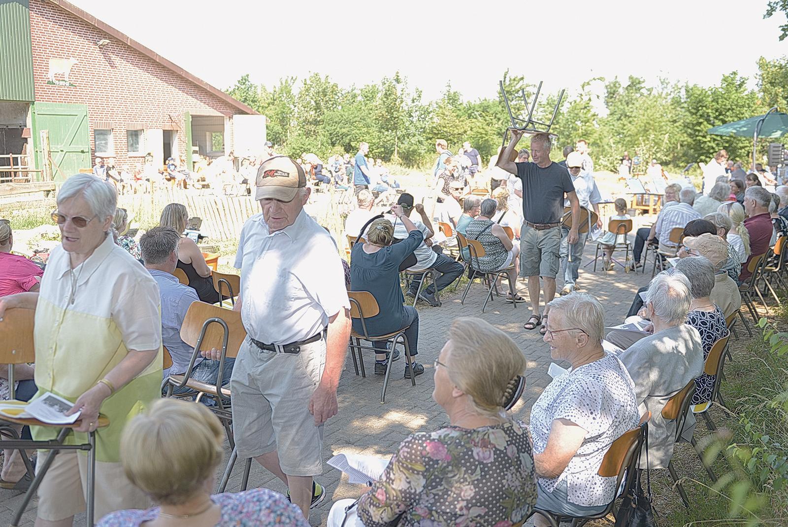 Es war der zweite Hofgottesdienst bei Stephanie und Peter Brink, zu dem die Mitglieder der beiden reformierten Kirchengemeinden Vellage und Stapelmoor jetzt auf das Hofgelände des Ehepaars in Vellage eingeladen waren.