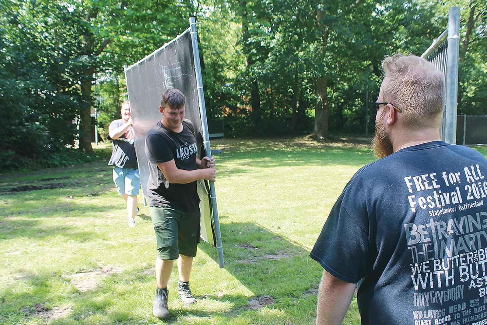 Auf der grünen Wiese im Stapelmoorer Park ist am Dienstag kräftig angepackt worden. Am ersten Tag des Aufbaus für das »Free for all reloaded«, das am Samstag nach sieben Jahren zurückkehrt, wurde von einem Team aus ...