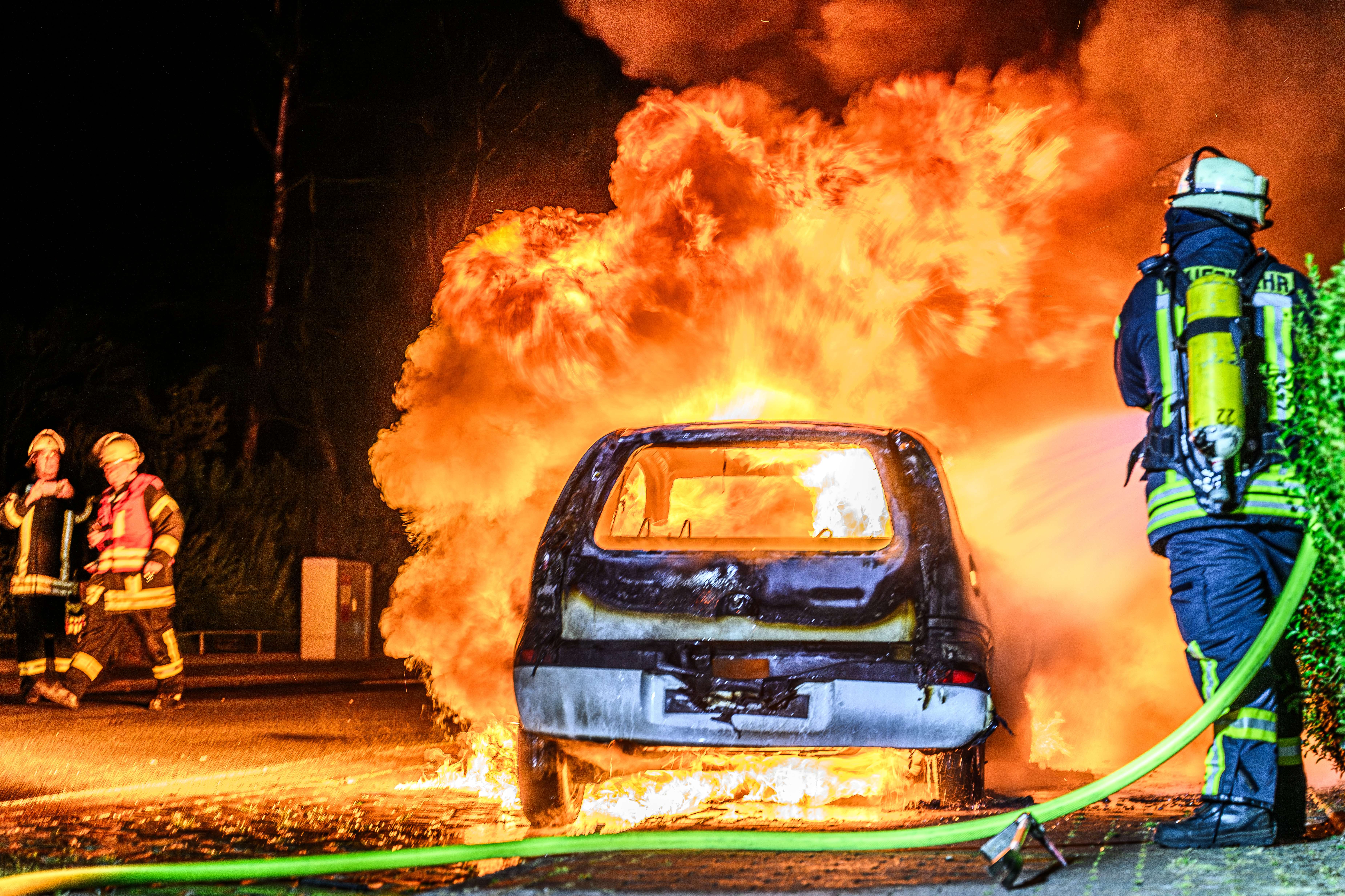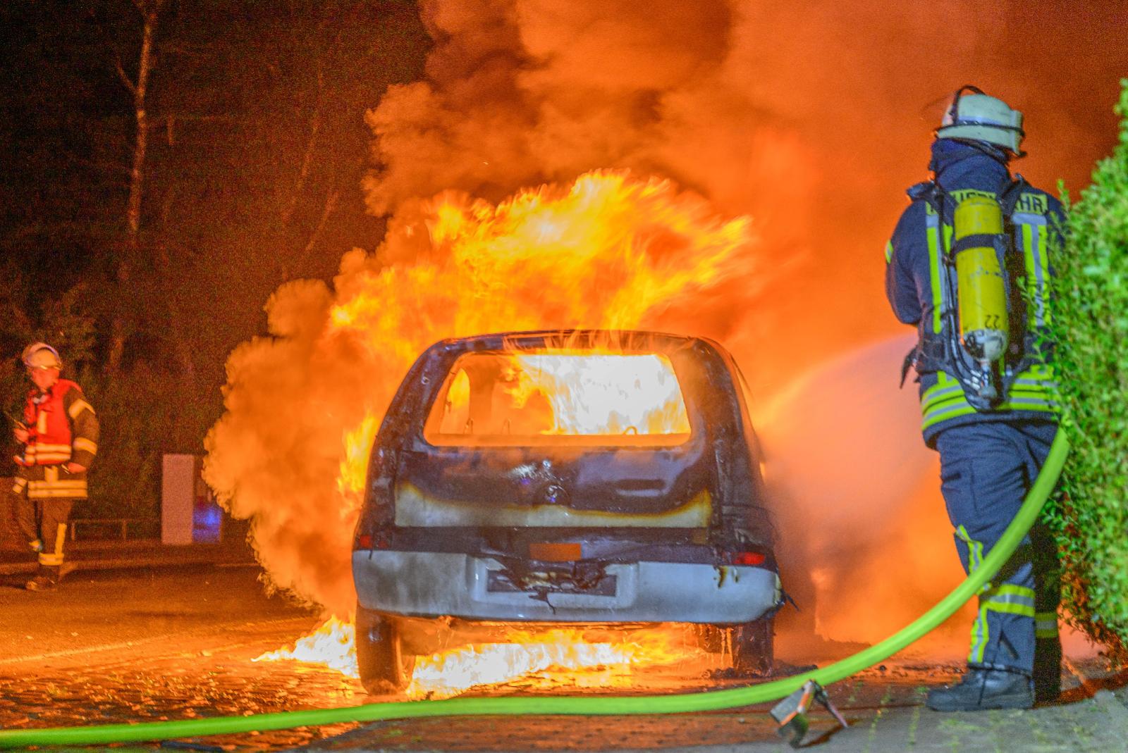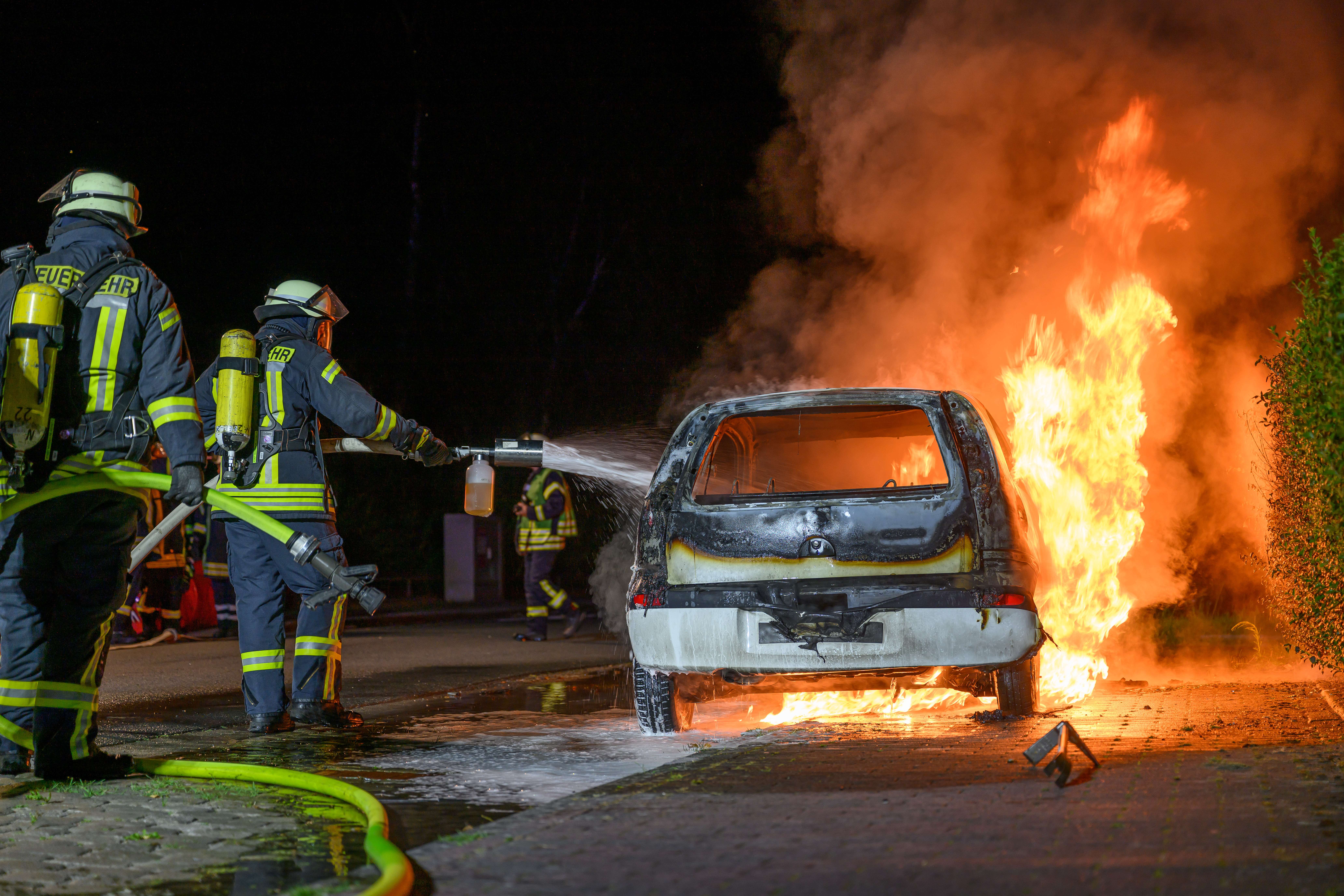 In der Norderstraße in Weener ist in der Nacht zu Donnerstag aus noch ungeklärter Ursache ein Auto in Brand geraten. Die Feuerwehr Weener wurde um 0.38 Uhr alarmiert. Als die Einsatzkräfte am Ort des Geschehens im Bereich der Nordrandsiedlung eintrafen, stand der weiße Opel Corsa bereits lichterloh in Flammen.