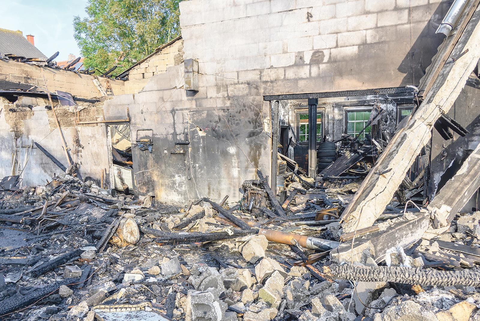 Nach dem Großbrand einer Gewerbehalle an der Panneborgstraße in Weener laufen Untersuchungen hinsichtlich einer möglichen Schadstoffbelastung. Fachleute waren gestern Morgen vor Ort und nahmen Proben, die nun in einem Labor analysiert werden.