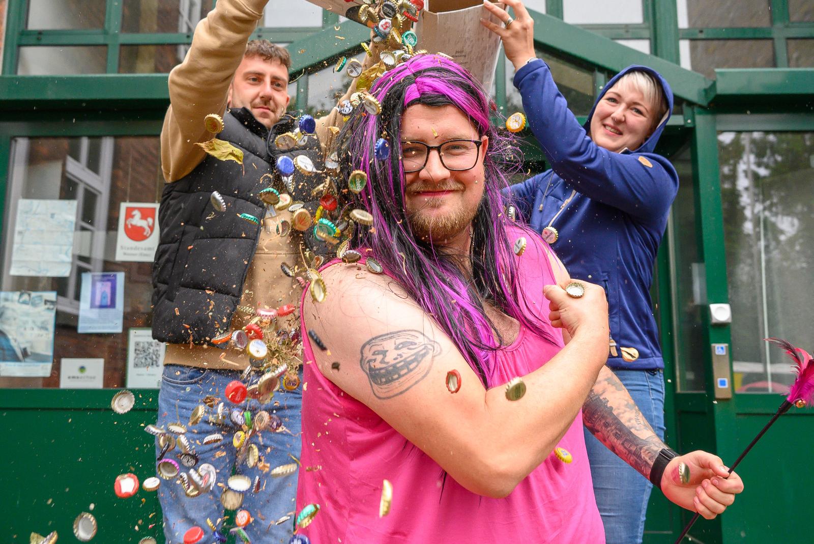 Mark Oltrop hat zu seinem 30. Geburtstag die Rathaustreppe in Weener gefegt