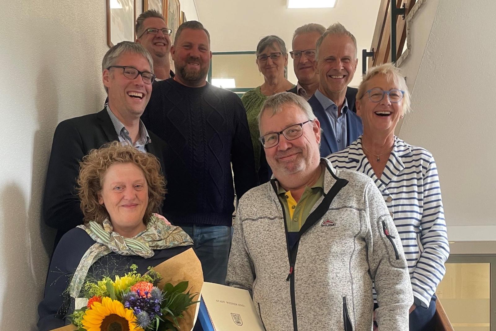 Besondere Ehrung im Rathaus: Heike van Lessen und Jan Brandt feiern ihr 25-jähriges Dienstjubiläum. Für beide begann im Jahr 1998 der berufliche Werdegang bei der Stadt Weener – wenn auch in völlig verschiedenen Einrichtungen.