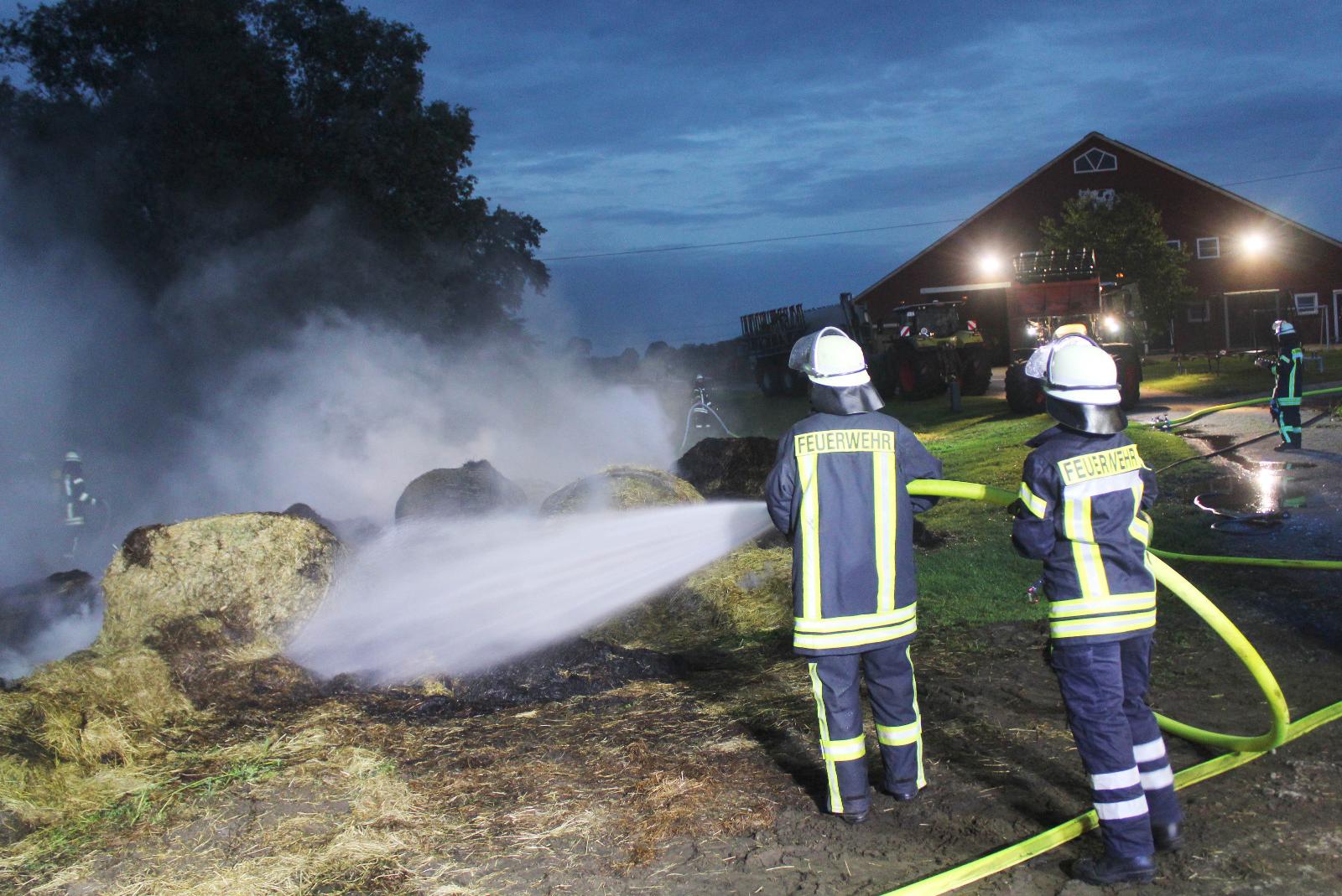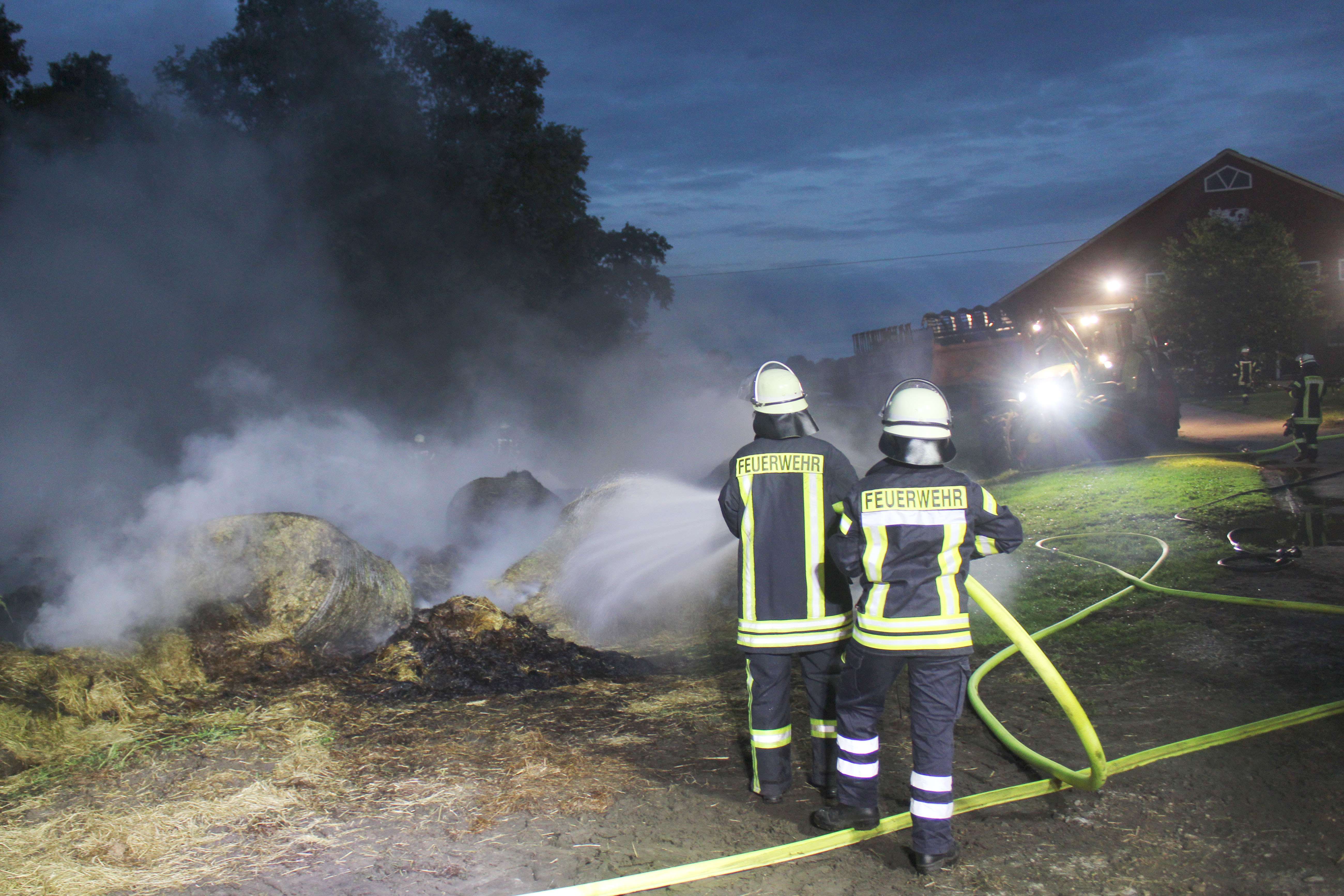 Glücklicherweise lagen die Rundballen abseits der landwirtschaftlichen Anwesen, so dass Gebäude nicht durch das Feuer gefährdet wurden. Nach mehr als drei Stunden konnte der Einsatz soweit abgeschlossen werden, um 1 Uhr am frühen Montagmorgen waren auch die letzten Glutnester gelöscht.
