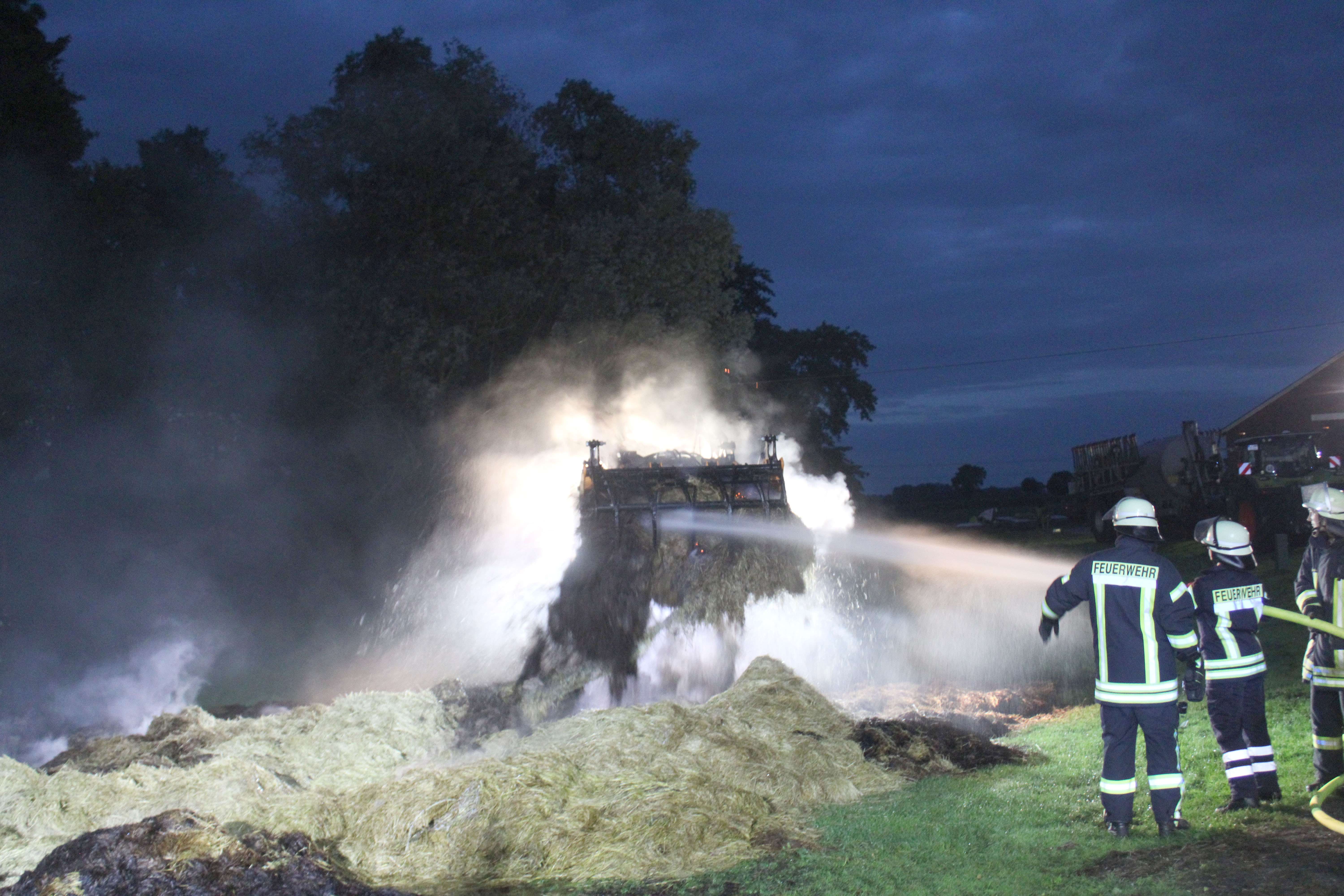 Feuerwehr löscht brennende Heuballen