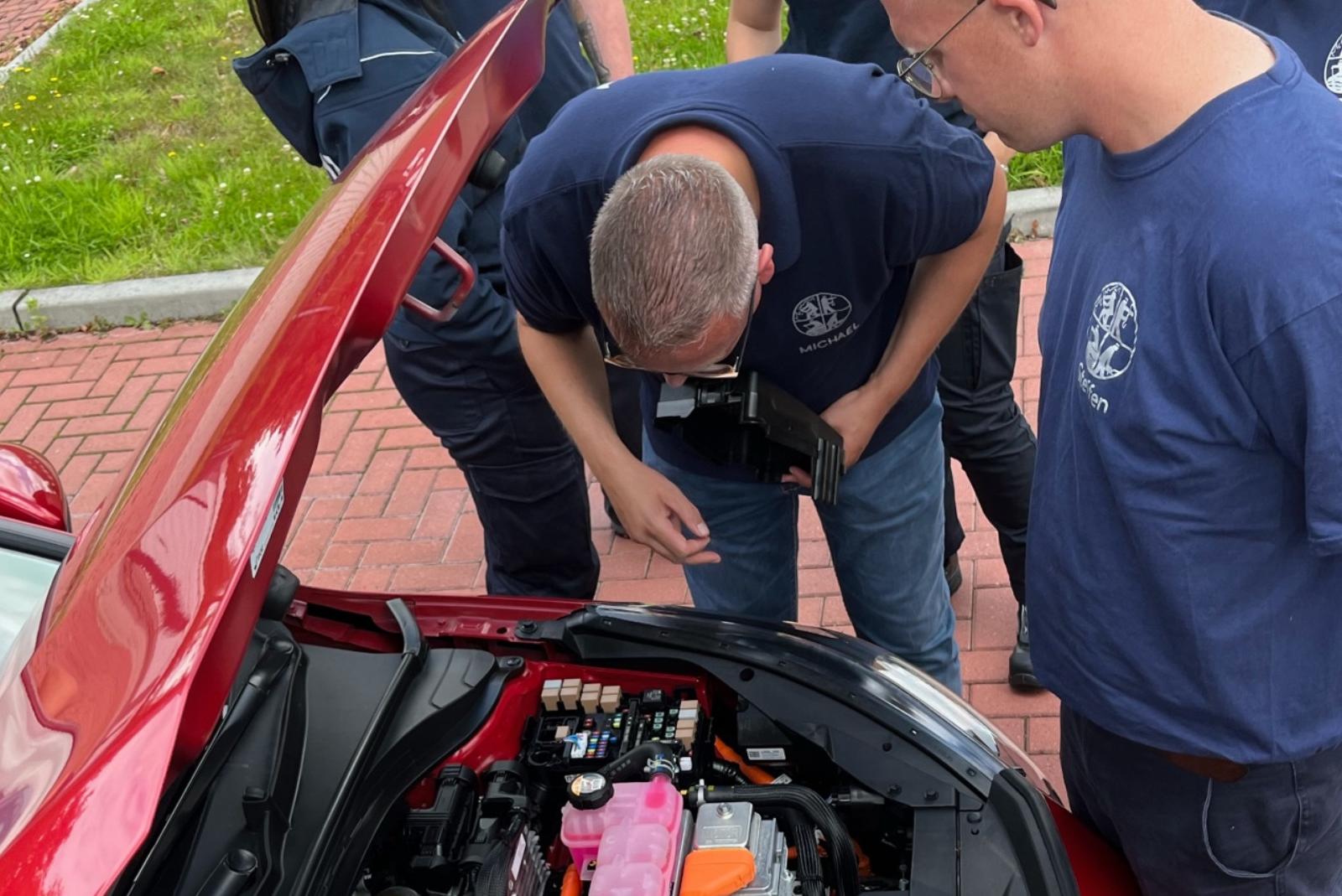 Der Trend, dass der Verbrennungsmotor zu einem Auslaufmodell wird und die Entwicklung hin zum Elektroantrieb stellt die Feuerwehren vor neue Herausforderungen bei technischen Hilfeleistungen, wie beispielsweise einem Verkehrsunfall. Einsatzkräfte der Feuerwehren Loppersum, Groß-Midlum, Osterhusen, Hinte, Emden ...