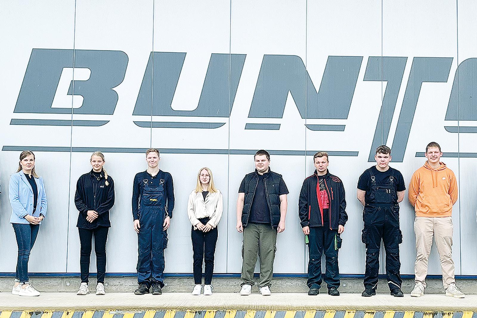 Am 1. August begann für die neuen Auszubildenden und Jahrespraktikanten der Start in ihre berufliche Zukunft bei der Firmengruppe Hermann Bunte. Im Bild von links Jannes Husmann (Ausbilder Kfz-Mechatroniker), Nadine Weiland (Ausbildungsleiterin), Hilke Neumann (Praktikum FOS Technik), Jan Bluhm (Kfz-Mechatroniker ...