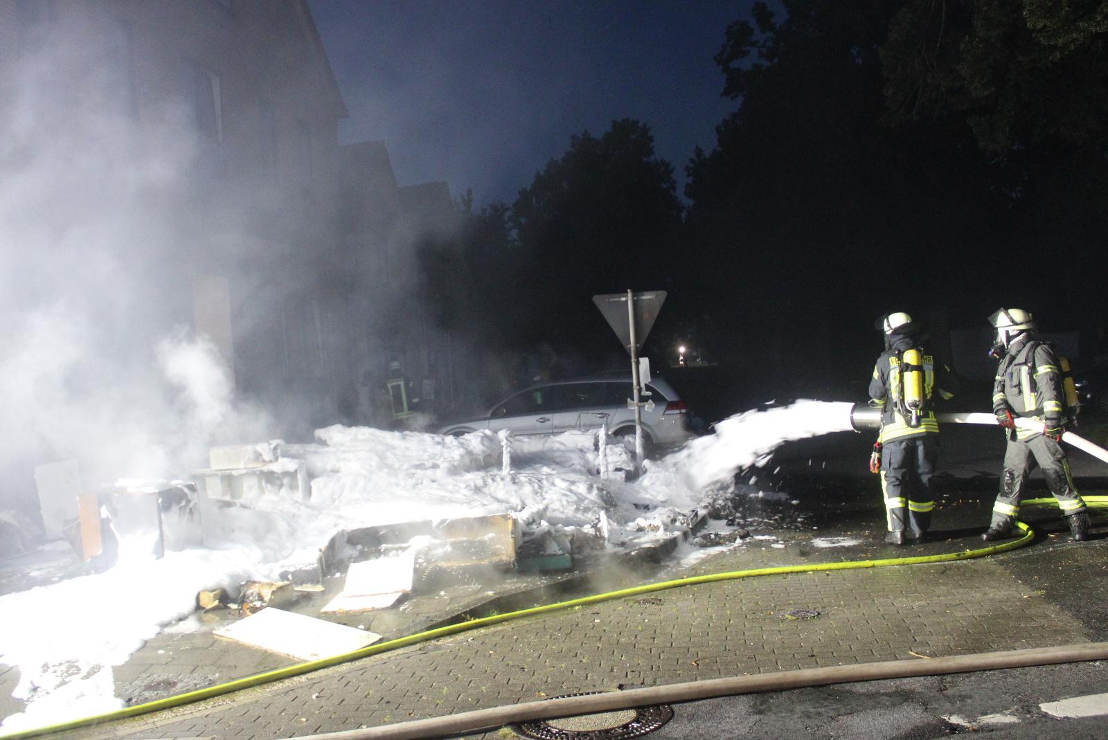 Passanten bemerkten das Feuer und alarmierten umgehend die Feuerwehr. Bei Eintreffen der Einsatzkräfte stand der Sperrmüllhaufen bereits in Vollbrand. Einsatzkräfte unter Atemschutz setzten mehrere Strahlrohre ein, um das Feuer zu löschen.