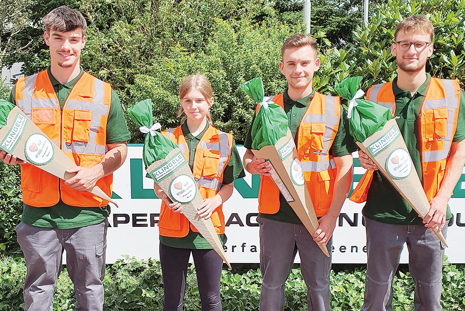 Vier junge Menschen haben jetzt ihre Ausbildung bei Klingele Paper in Weener aufgenommen: Jonas Koenen, Saphira Pargmann, Bram van Leeuwen und Jannek Hinderks.