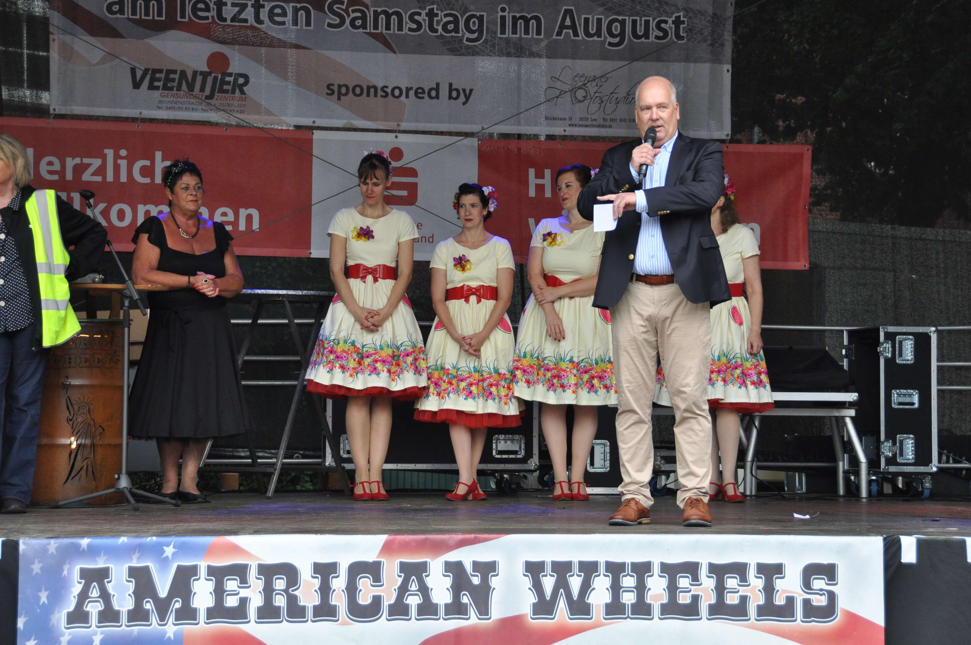 Bei der Eröffnung der Veranstaltung auf dem Ernst-Reuter-Platz freute sich Bürgermeister Claus-Peter Horst, dass der neue Standort der Bühne auch angenommen wird. Die Fahrzeuge waren bereits am Morgen eingetroffen und zogen vom Rathaus bis zum Denkmalsplatz die Blicke auf sich. Zudem sorgten Wahlen zur »Miss American Wheels 2023« und zur »Miss Mini Rockabella« mit Bewerberinnen in stilechten Petticoats für eine lebendige Zeitreise in die goldene Ära des amerikanischen Automobilbaus. Auch der typische Gaumenschmaus mit Burgern, Hot Dogs und Süßigkeiten passte zum Ambiente. Ein buntes Rahmenprogramm mit einem Auftritt der Tanzgruppe »Shuffled«, dem »Sound of Elvis« mit Tom Miller und Musik von DJ »Rollin' Danny« sowie eine Rock´n´Roll-Party mit den »Gamble Blue Cats« rundeten das Programm ab.