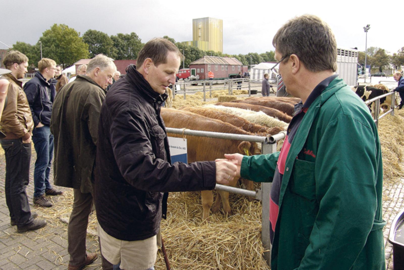 Heinrich Niemeyer (l.) versucht, mit einem möglichen Käufer einen Preis per Handschlag auszuhandeln. © Fotos: Boelmann