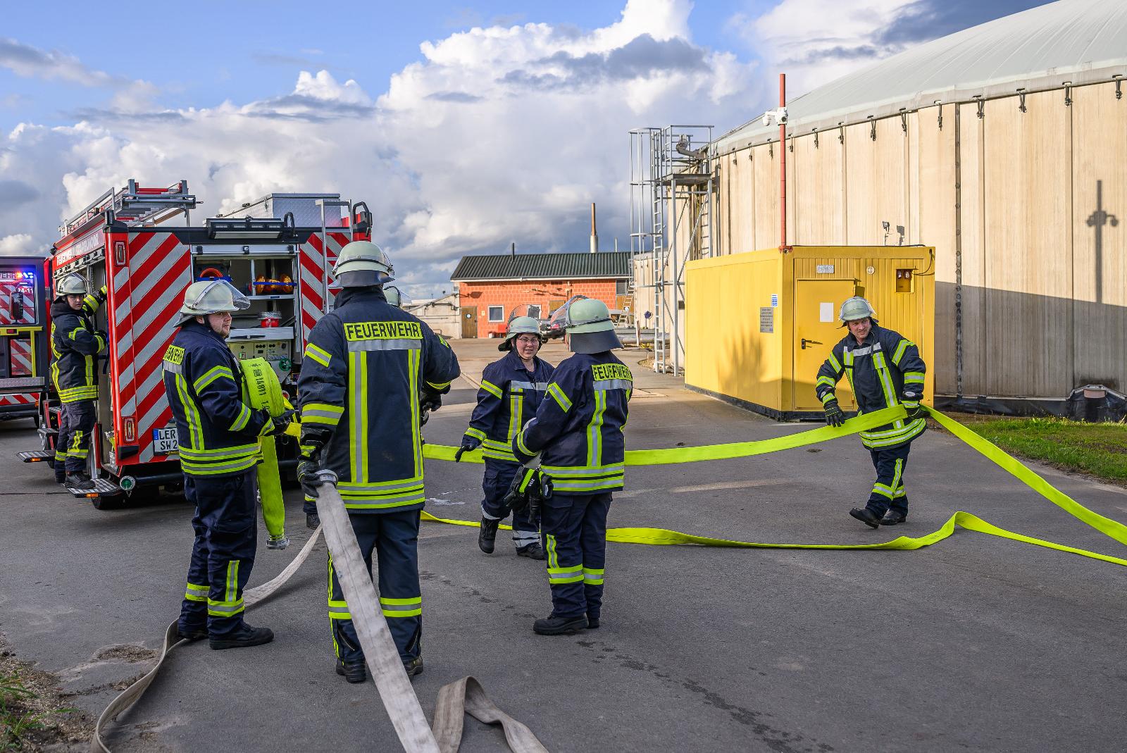 Gemeinsame Einsatzübung von vier Feuerwehren auf Gelände der Biogasanlage in Vellage