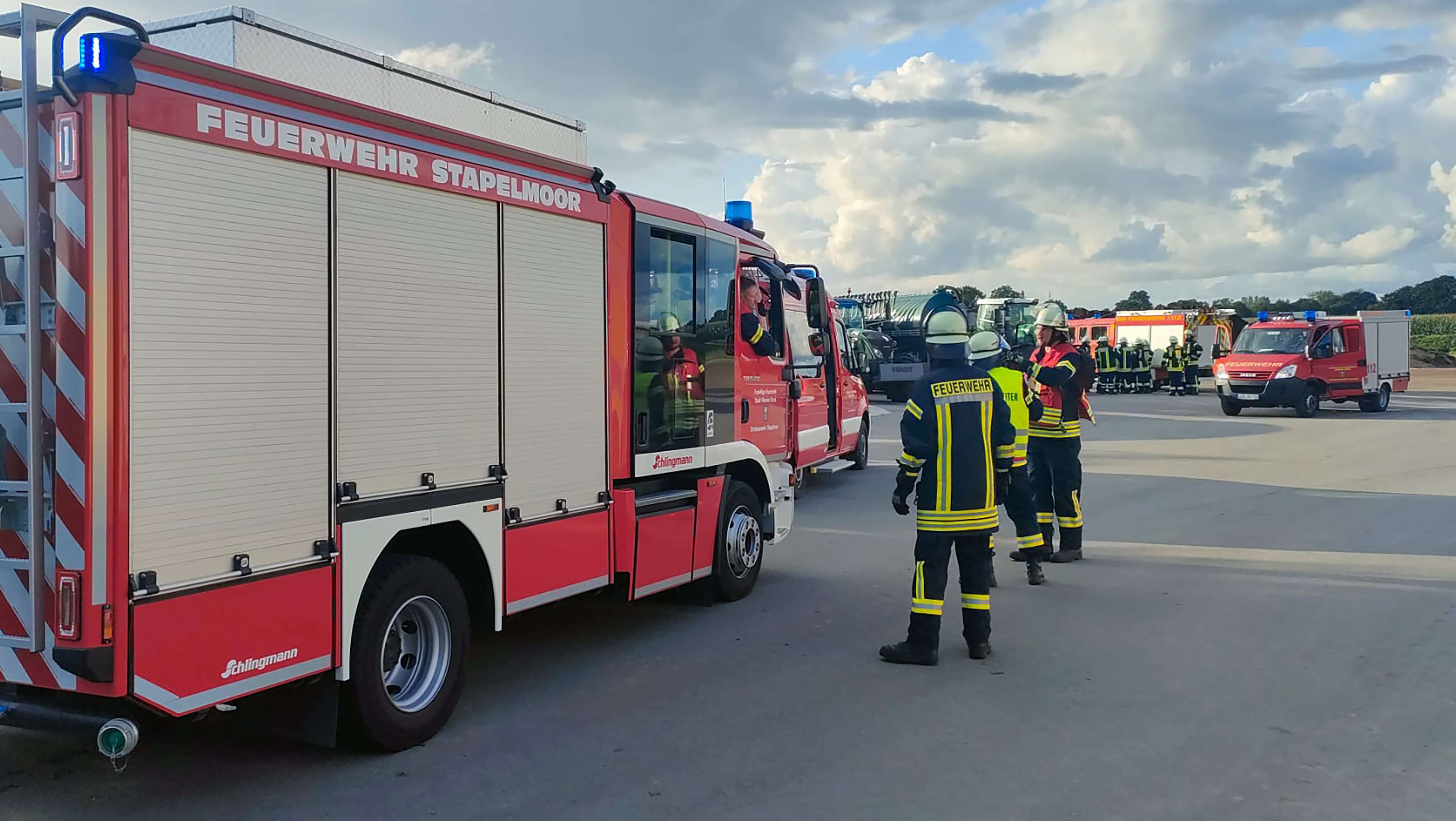 Im Einsatz war die Feuerwehr Vellage mit dem Tragkraftspritzenfahrzeug TSW-W, die Feuerwehr Stapelmoor mit dem Hilfeleistungslöschgruppenfahrzeug HLF 10 und die Feuerwehr Diele mit dem Löschgruppenfahrzeug LF 8 sowie die Feuerwehr Weener mit dem Einsatzleitwagen ELW.