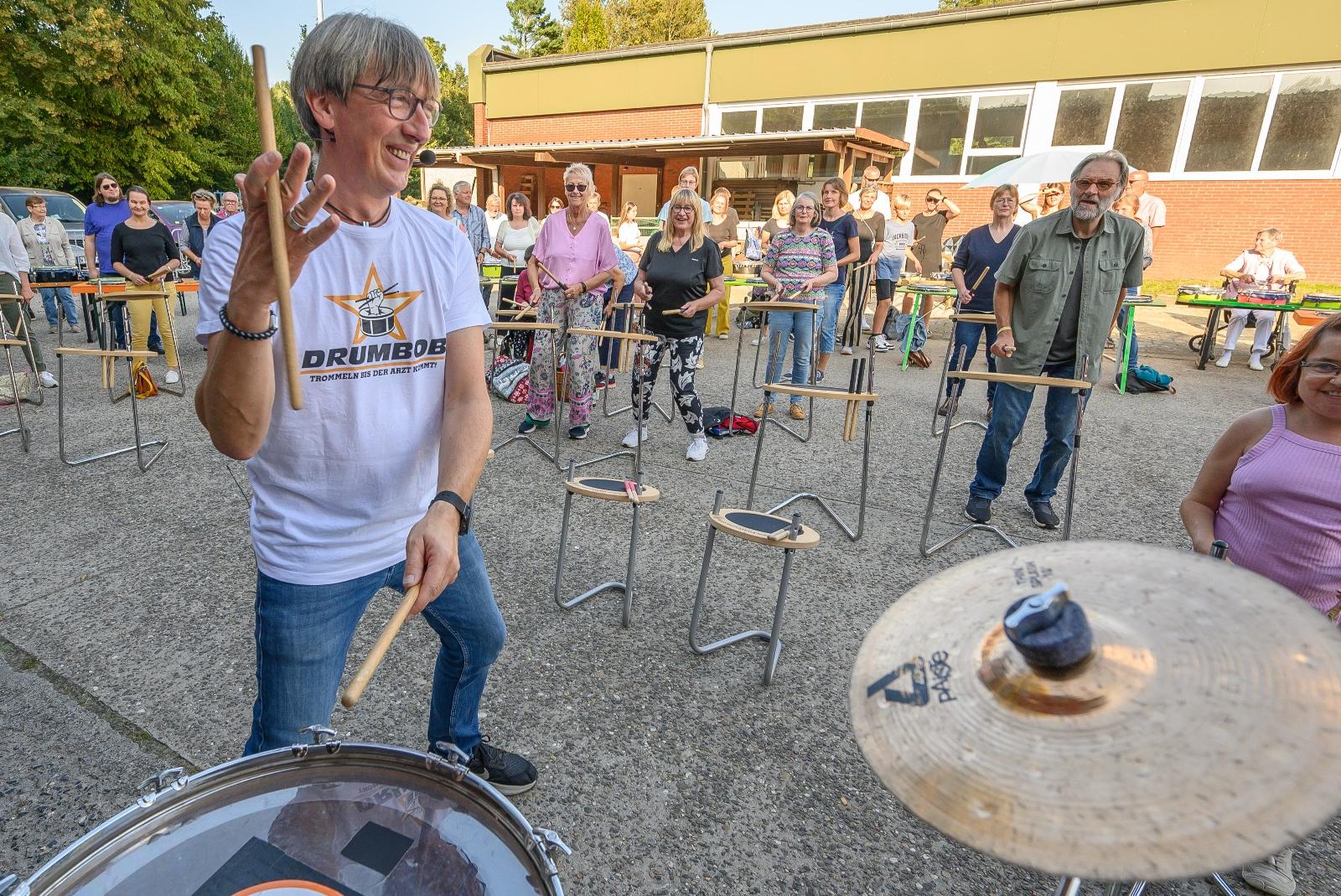 50 Menschen beim Rudeltrommeln in Weener