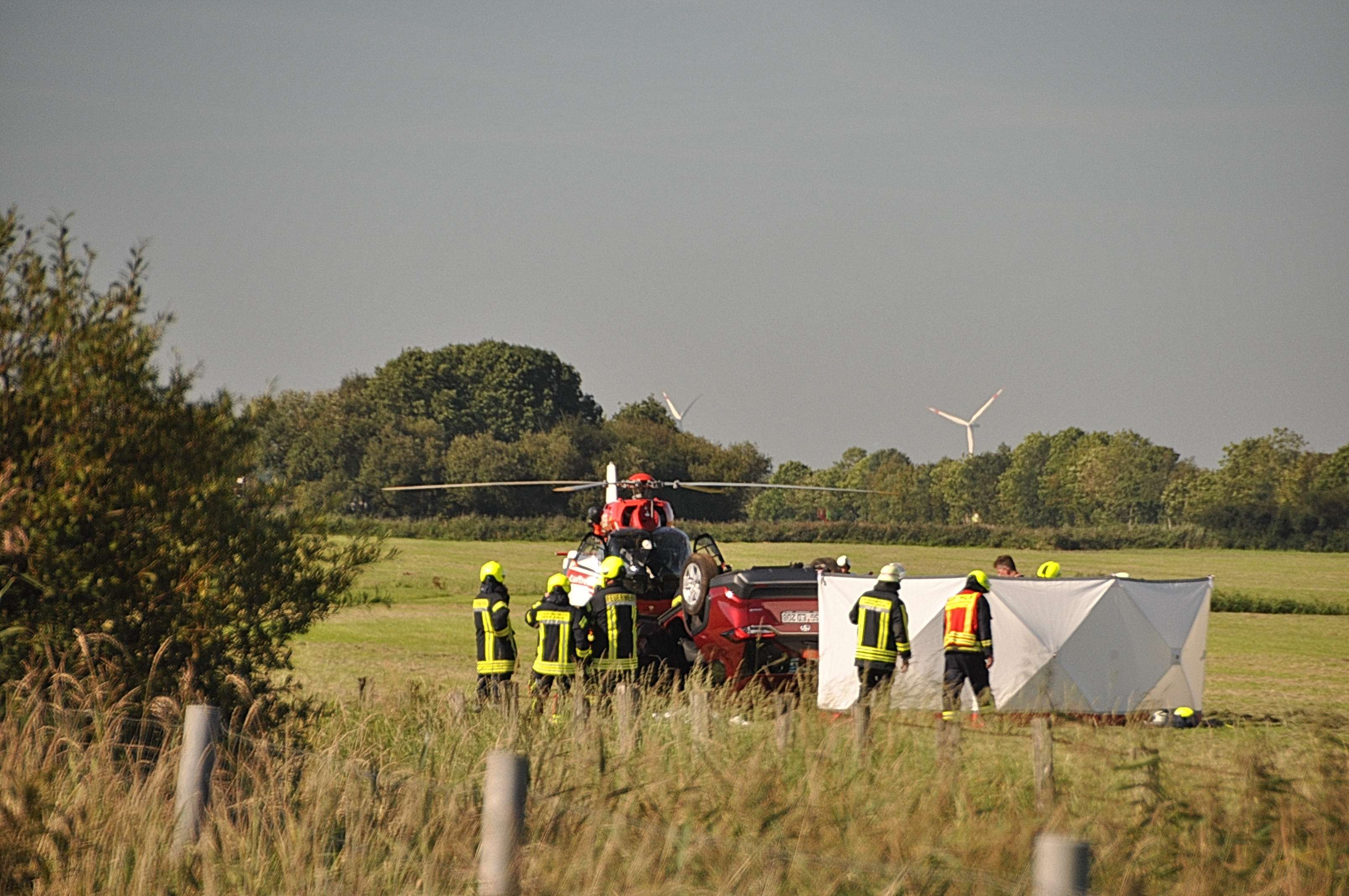 Die 68-jährige Fahrerin und ihr 81-jähriger Beifahrer wurden bei dem Unfall in dem Fahrzeug eingeklemmt. Vor Ort wurde die Feuerwehr zur Bergung der Personen eingesetzt. "Die Frau aus Solingen verstarb nach dem Unfall trotz eingeleiteter Rettungsmaßnahmen noch an der Unfallstelle", so die Polizei. Der Beifahrer wurde mit einem Rettungshubschrauber in ein Krankenhaus geflogen, wurde aber anschließend als leicht verletzt eingestuft.