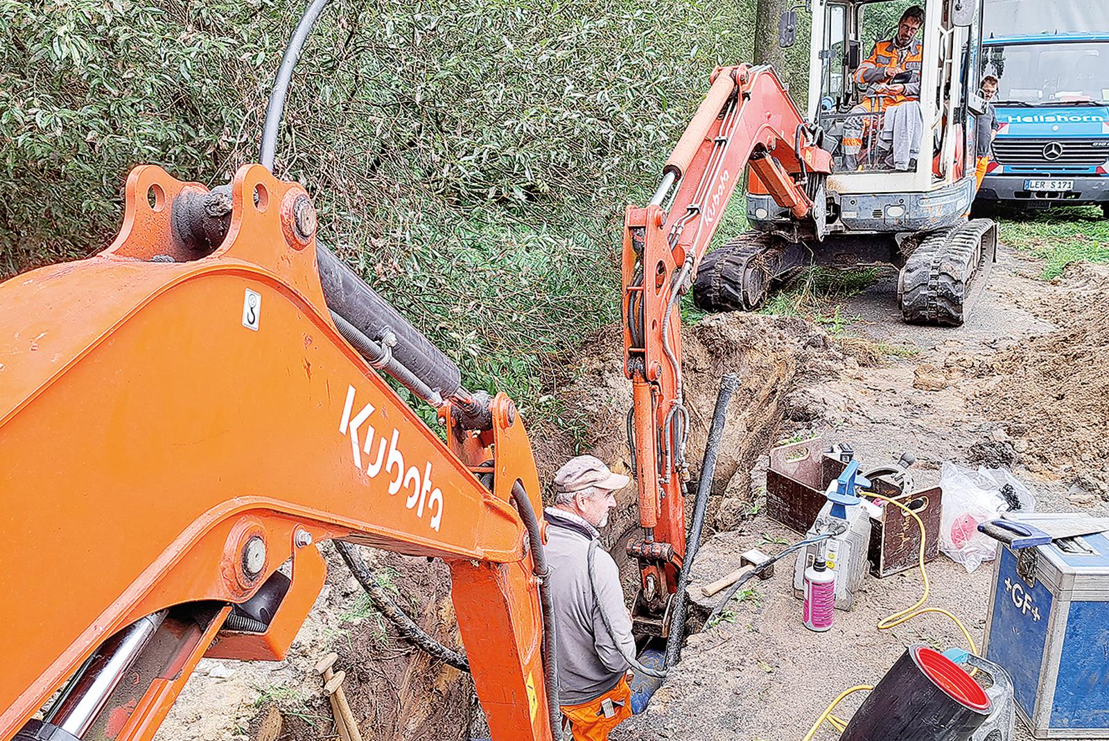Verband verlegt neue Leitung von Diele zur Gewächshaus-Siedlung in Halte