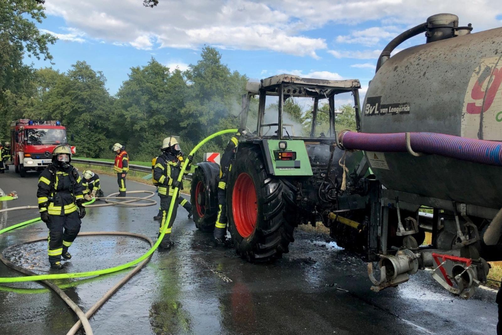 Mehrere Einsatzfahrzeuge der Feuerwehr Westrhauderfehn sind gestern gegen 16.15 Uhr zu einem Treckerbrand zur Langholter Straße in Westrhauderfehn ausgerückt. Der Fahrer teilte der Polizei mit, dass er mit dem Trecker und einem leeren Gülleanhä...