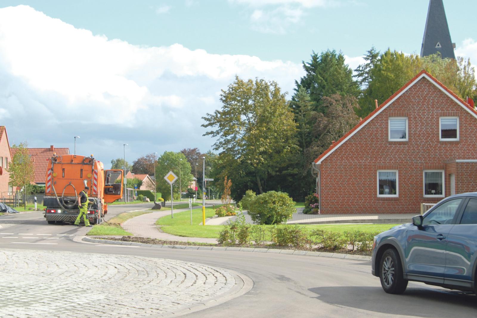 Der Schulbus in Möhlenwarf hält wegen der laufenden Bauarbeiten an der Alten Bahnhofstraße