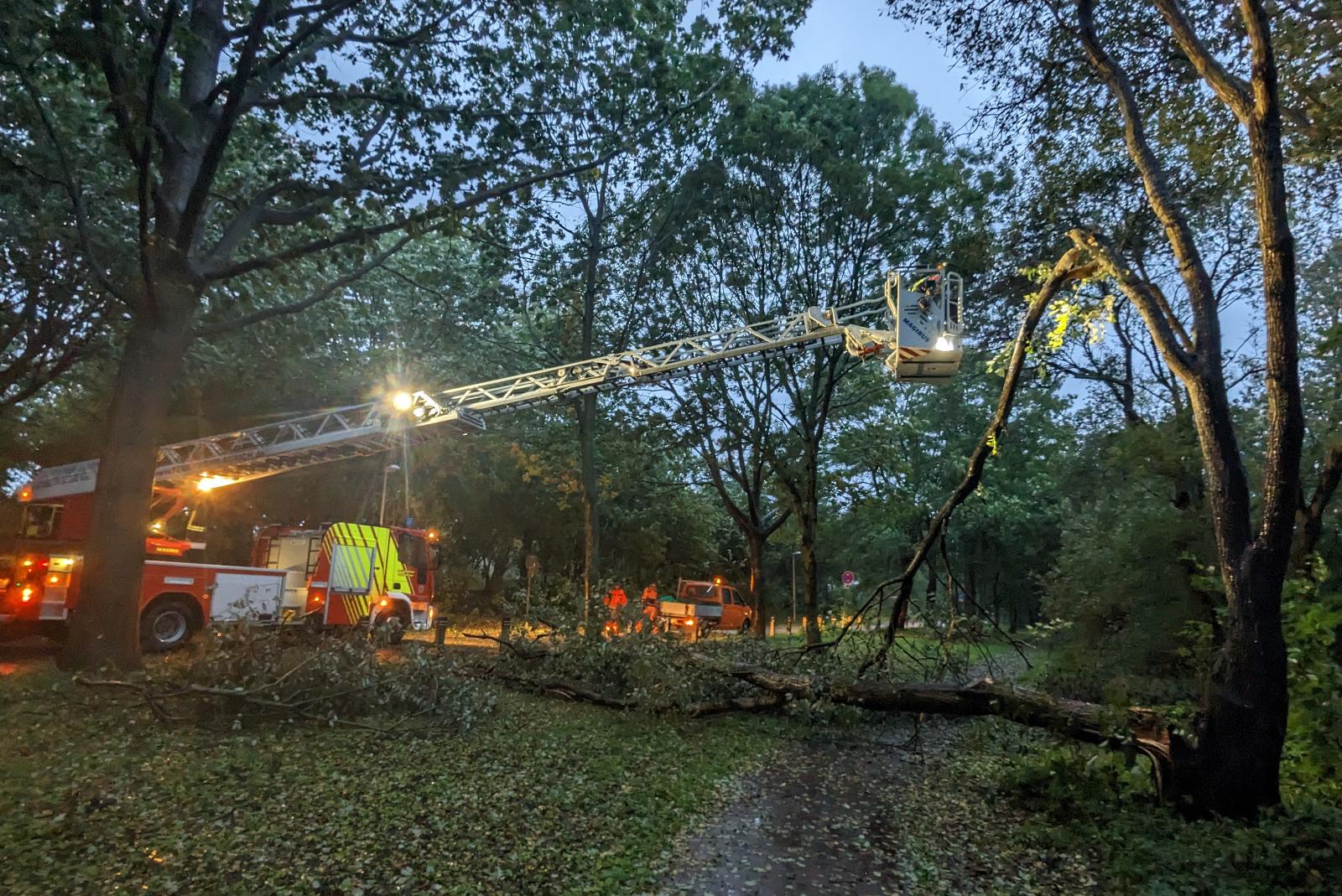 Abgebrochener Ast in luftiger Höhe: Auf Anforderung des Bauhofes ist die Drehleiter der Feuerwehr Aurich am frühen Freitagabend in den Stürenburgweg im Ortsteil Tannenhausen ausgerückt. Dort war ein größerer Ast aus einem Baum gebrochen und drohte, nun auf einen Fußgängerweg zu stürzen. Über den Korb der Drehleiter entfernten die Feuerwehrleute den Ast kurzerhand mithilfe einer Kettensäge. Gut eine halbe Stunde nach Eintreffen war die Gefahr schließlich beseitigt und der Einsatz damit beendet.