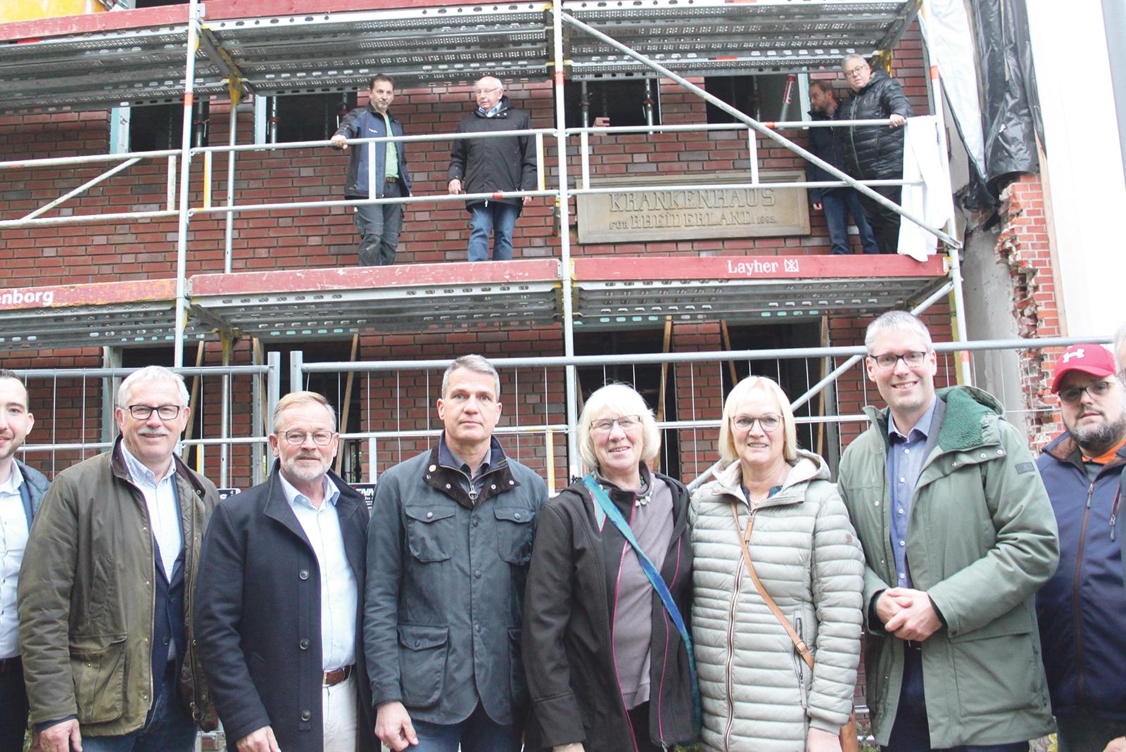 Ein ganz besonderer Stein ziert nun das Gemäuer des neuen Krankenhaus-Anbaus in Weener: Die alte Sandsteintafel mit dem Schriftzug des Krankenhaus Rheiderland aus dem Gründungsjahr 1882 ist in den Neubau eingesetzt worden.