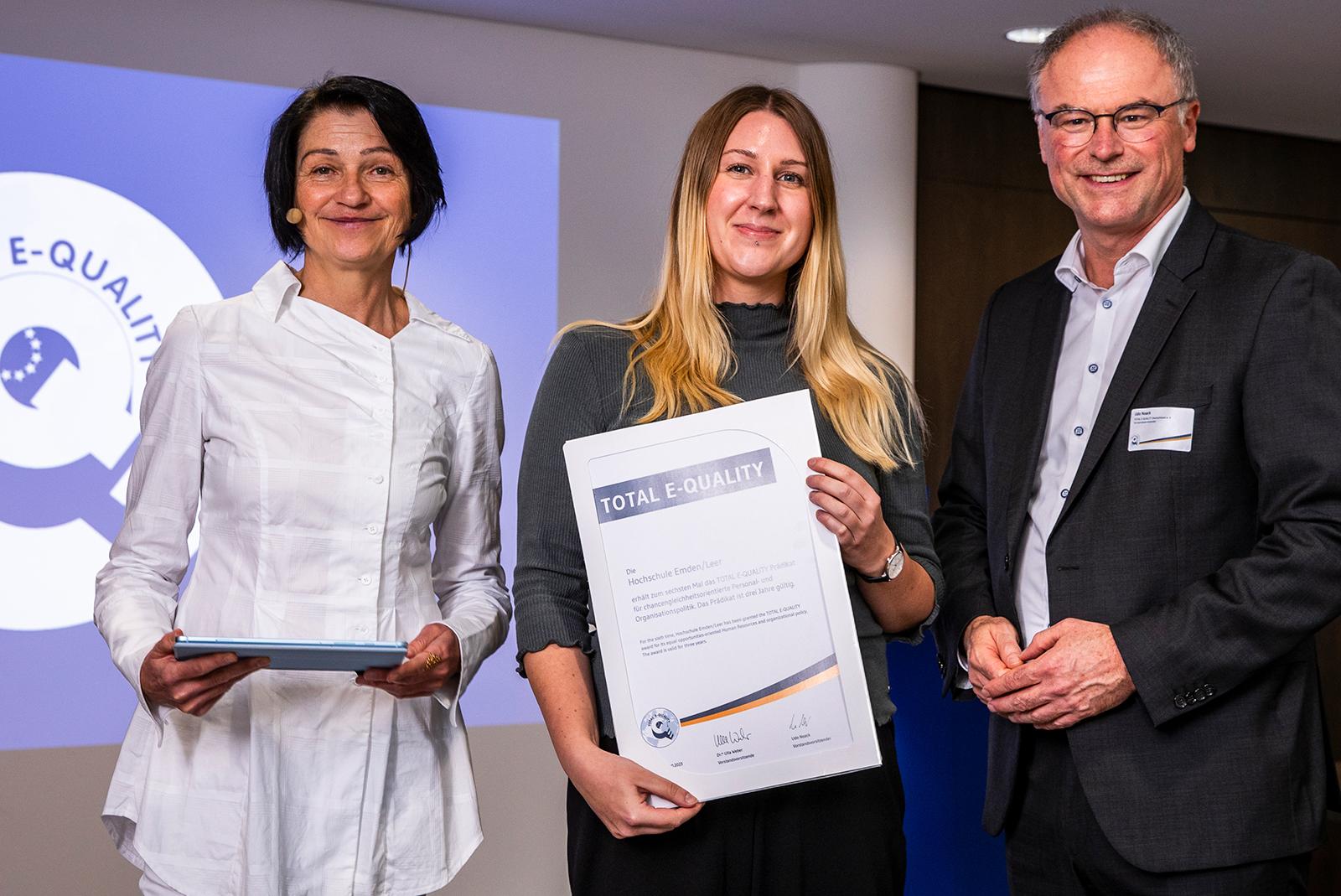 Die Hochschule Emden/Leer ist zum sechsten Mal mit dem Prädikat »Total E-Quality« des gleichnamigen Vereins ausgezeichnet worden. Damit wird der Einrichtung bescheinigt, herausragende Arbeit im Bereich der chancengerechten Personalpolitik und Förderung der Vielfalt im Unternehmen zu leisten. ...