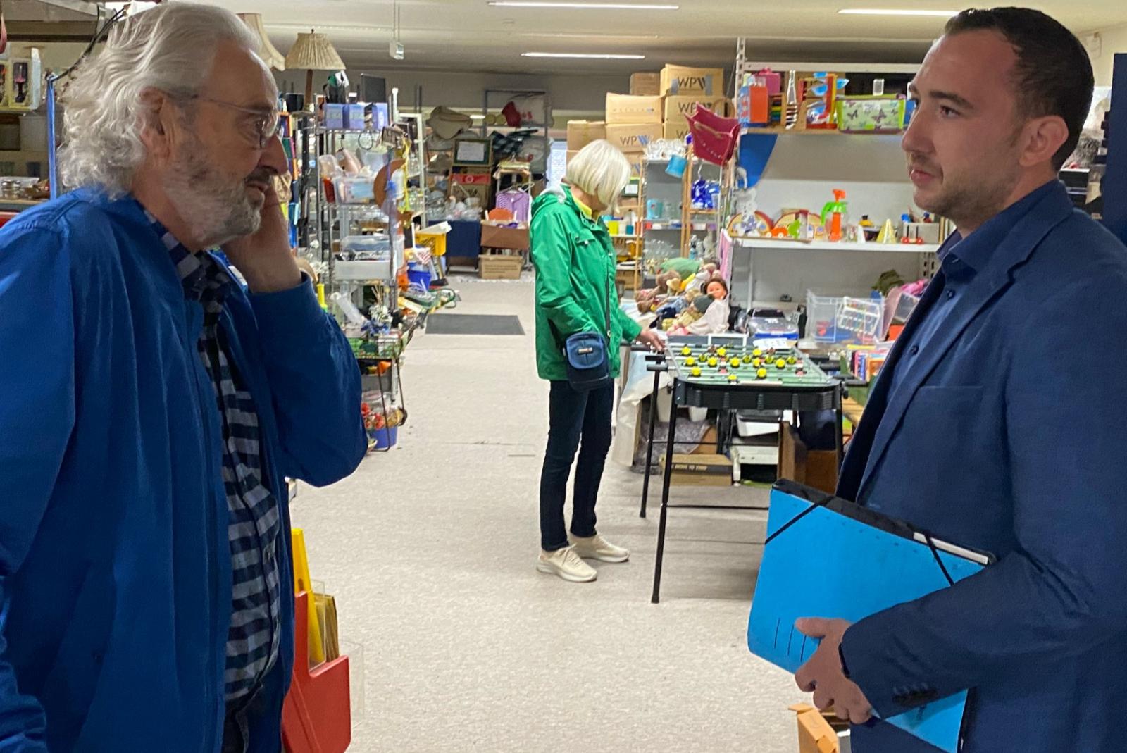 Bloem zeigte sich beeindruckt vom Angebot des Sozialen Kaufhauses und auch des Brotkorbs, das durch ein Kühlhaus Vorräte ansammeln kann. „Hier wird kein Ramsch angeboten, sondern Kleidung, Bücher, Haushaltsgeräte und vieles mehr sind auf hohem Niveau, was bedürftigen Menschen wirklich hilft. Und auch das Lebensmittelangebot hat mich sehr überzeugt. Wir sind sehr froh, dass wir das Soziale Kaufhaus und den Brotkorb im Rheiderland haben – auch wenn es unser Ziel sein muss, dass solche Hilfen eigentlich gar nicht nötig sind“, meinte Bloem. Er will ein Anliegen Krafts aufnehmen – und zwar bei den drei Rheiderland-Kommunen eine kleine finanzielle Unterstützung anzuregen. „Schließlich heißt es Soziales Kaufhaus Rheiderland und kommt allen Menschen im Rheiderland zugute“, so Bloem.
