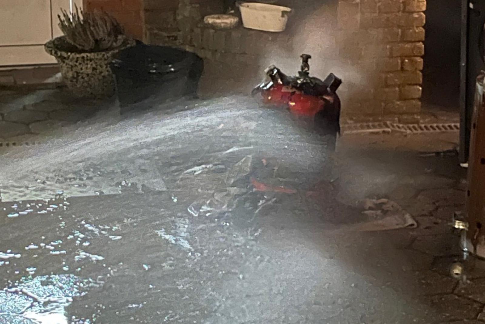 Heizstrahler steht nach technischem Defekt in Flammen