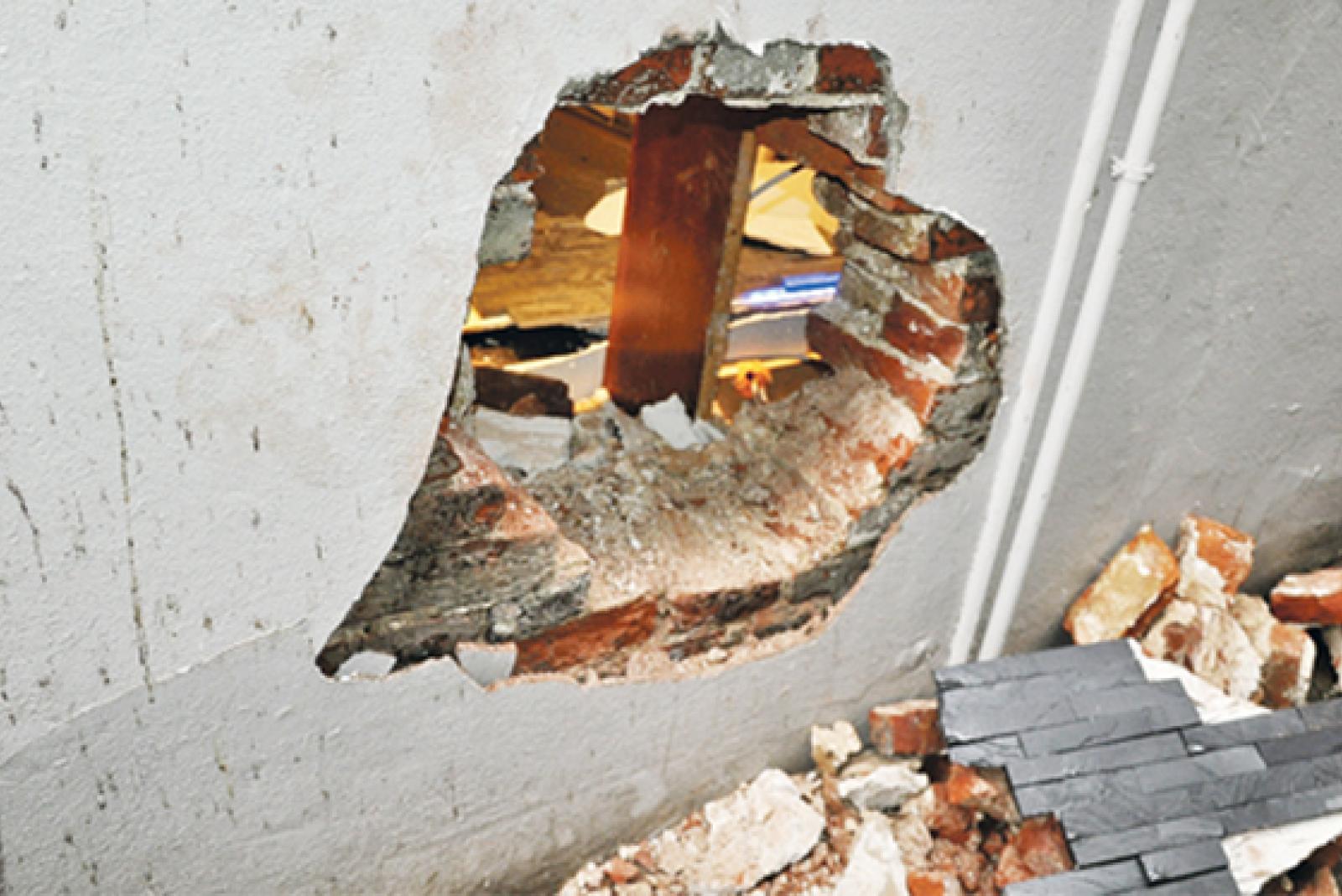 Wie im Film: Die Täter schlugen ein Loch in die Außenwand des Geschäfts. © Foto: privat