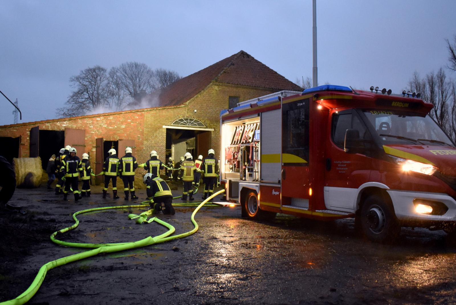 Die Ortsfeuerwehren Berdum, Eggelingen und Wittmund wurden am Sonntagnachmittag zum Brand am Berdumer Oberdeich gerufen. Aufmerksame Nachbarn hatten nach Feuerwehrangaben eine Rauchentwicklung aus einem Stalltrakt festgestellt und umgehend den Notruf abgesetzt. Sie informierten parallel den Anwohner. Dieser versuchte den Brand noch vor dem Eintreffen der Ortsfeuerwehren mit seinem Gartenschlauch zu löschen.
