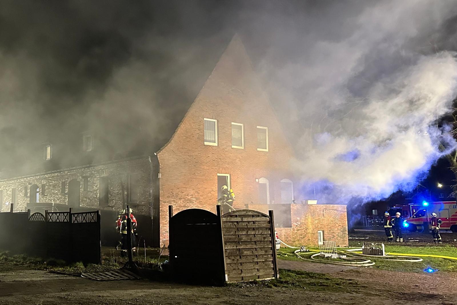 Am Samstagabend wurde den Auricher Feuerwehren gegen 23.15 Uhr ein Zimmerbrand gemeldet. Den ersteintreffenden Feuerwehrleuten schlugen bei Ankunft an der Einsatzstelle bereits dichte Rauchwolken aus mehreren Fenstern eines Doppelhauses entgegen. Der Brand hatte sich bereits auf weitere Teile des Gebäudes ausgebreitet.