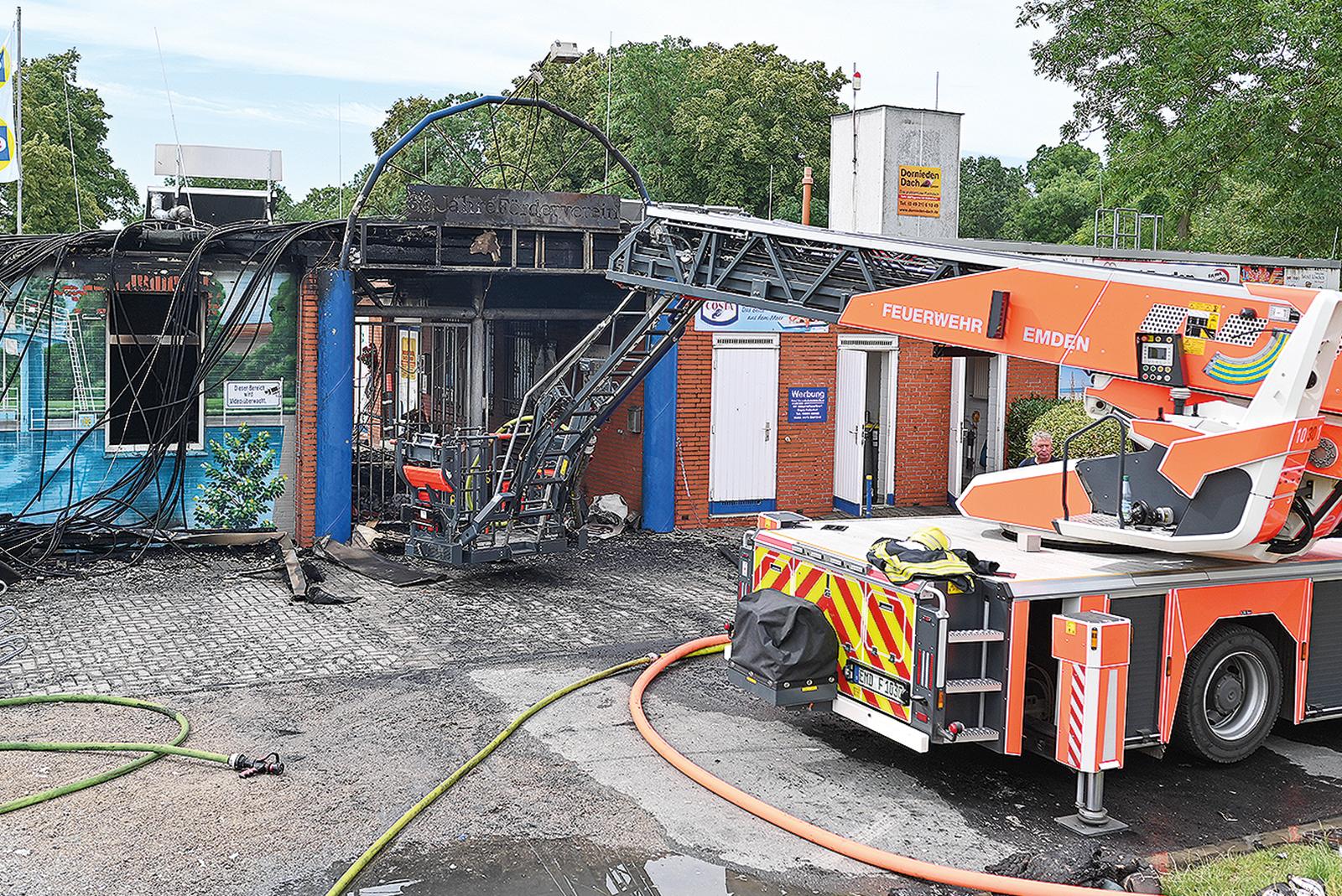 Die Ermittlungen zum Brand in dem Van-Ameren-Bad in Emden sind abgeschlossen. Ein 26-jähriger Mann und zwei Heranwachsende sollen sich wegen schwerer Brandstiftung vor dem Landgericht Aurich verantworten. Ein Termin für die Verhandlung steht noch nicht fest.