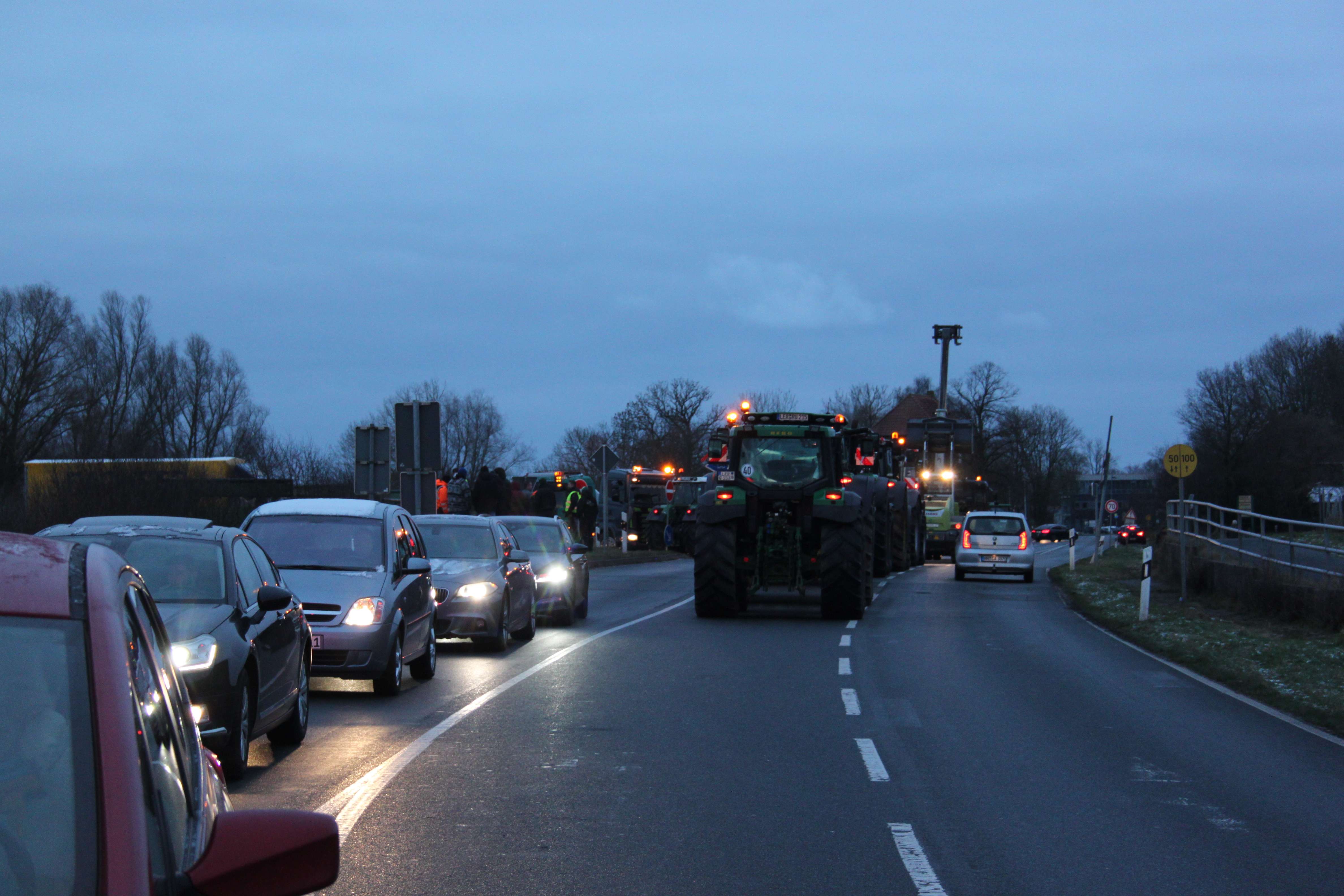 Bereits um 5 Uhr morgens versammelten sich die ersten Protestierenden auf beiden Seiten der Jann-Berghaus-Brücke. Ob Landwirte, Lohnunternehmer, oder auch Agrartechniker: Sie alle setzen den ganzen Tag lang ein Zeichen gegen die Maßnahmen der Bundesregierung. "Es gibt für uns keine Perspektiven mehr. So kann es nicht weitergehen", sagt etwa Arno Tempel aus Stapelmoorerheide. Dass die Regierung die Agrar-Kürzungen teilweise zurückgenommen hat und sie nun stufenweise abgeschafft werden, hält er für nicht ausreichend.