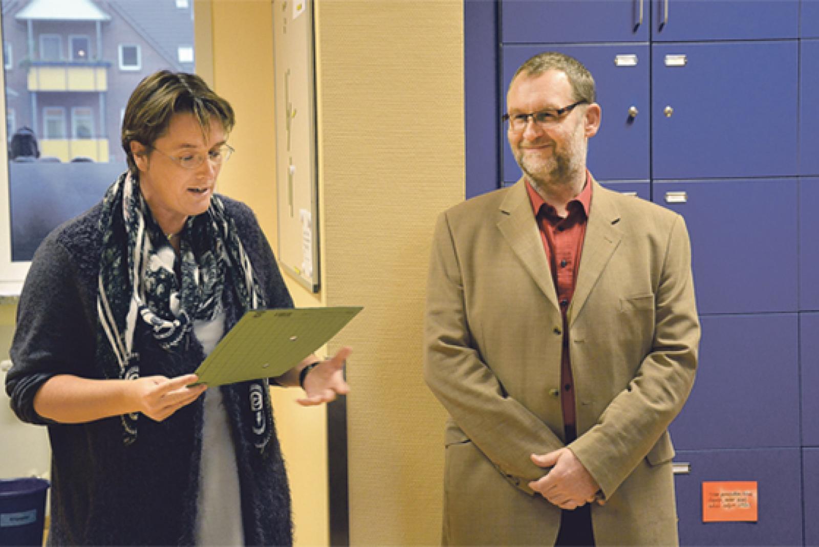 Ulf Rott erhielt seine Ernennungsurkunde zum neuen Leiter des TGG aus den Händen von Silvia Pünt-Kohoff, Dezernentin der Landesschulbehörde. © Foto: privat