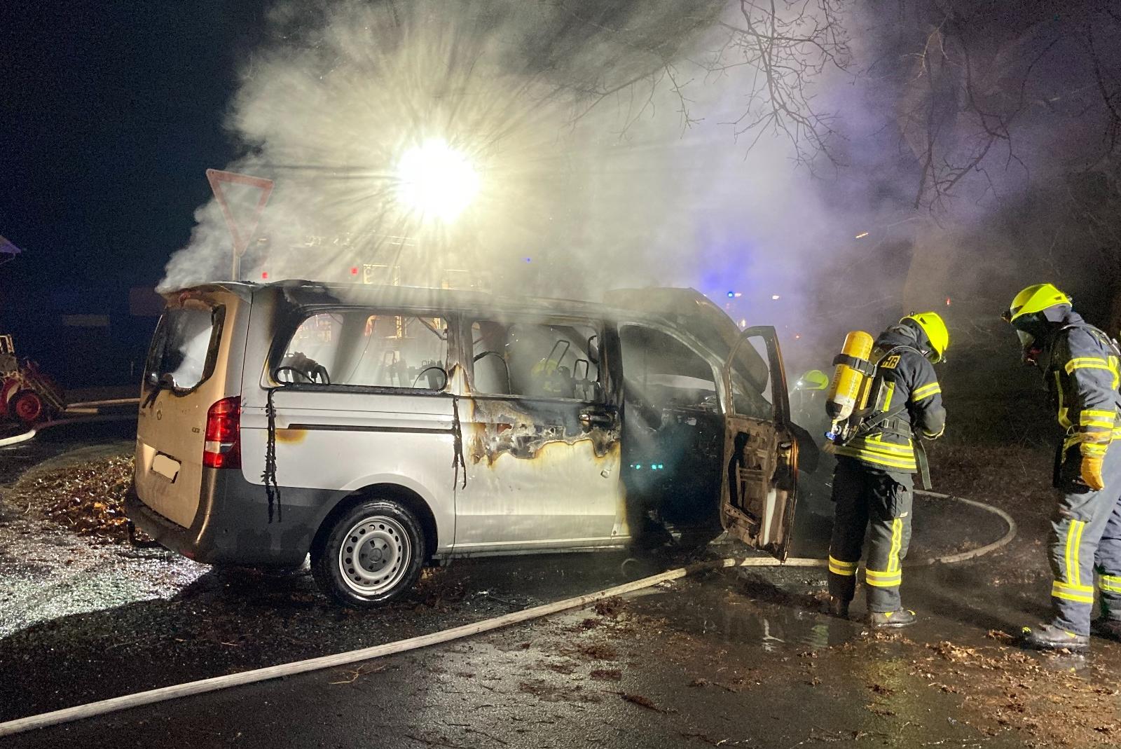 Die Feuerwehrleute konnten das brennende Fahrzeug schnell löschen. Aufgrund der starken Rauchentwicklung gingen die Einsatzkräfte unter Atemschutz vor. Insgesamt waren 15 Feuerwehrleute mit drei Fahrzeugen vor Ort. Das Feuer war nach rund zwanzig Minuten gelöscht, Personen kamen bei dem Brand nicht zu Schaden.