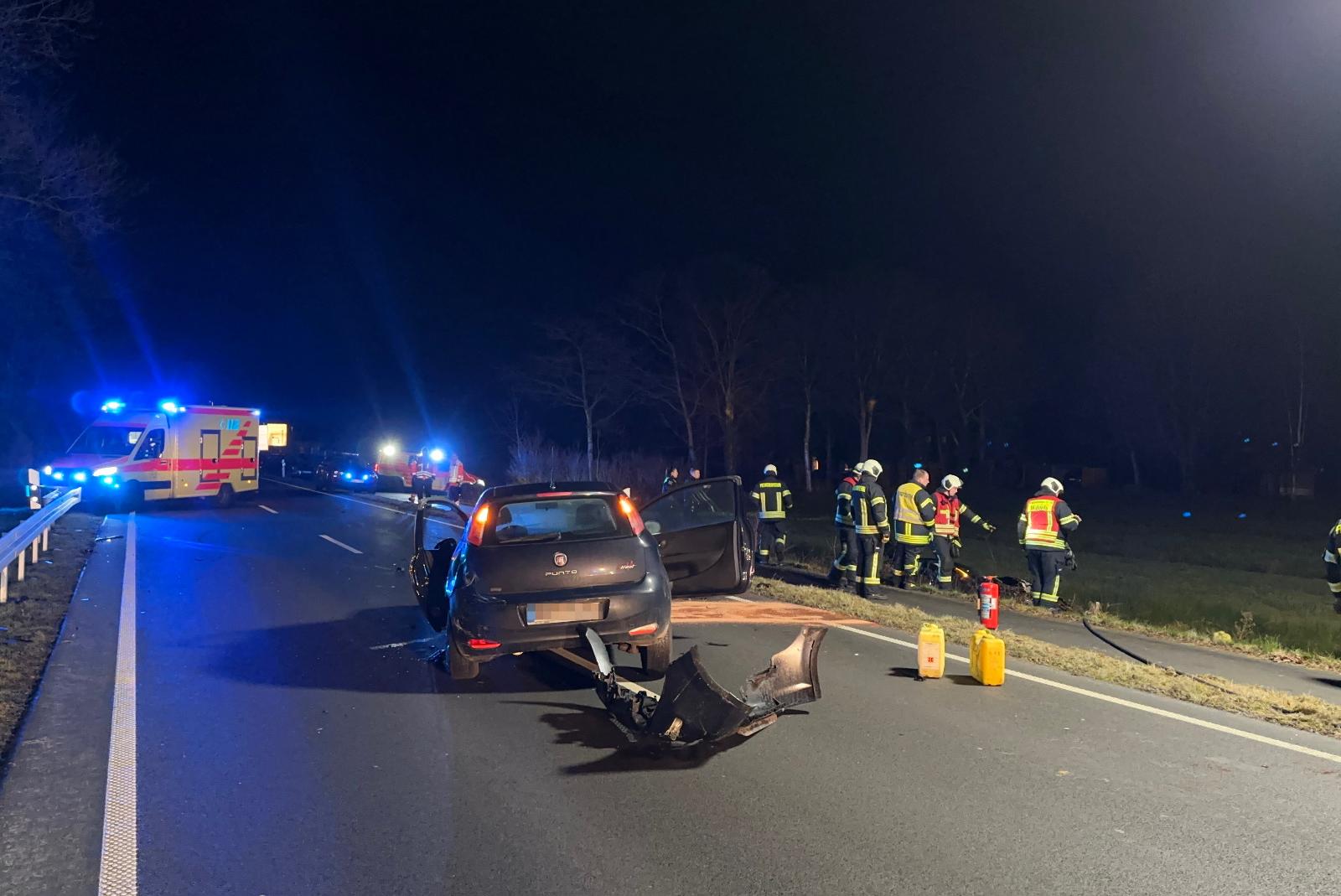 Bei einem Verkehrsunfall auf der Bundesstraße 210 zwischen Plaggenburg und Middels sind heute morgen zwei Menschen schwer verletzt worden. Um 5.32 Uhr wurden die Ortsfeuerwehren Middels und Sandhorst sowie Rettungsdienst und Polizei alarmiert. Unklar war zunächst, ob die Unfallopfer womöglich noch in ihren Fahrzeugen eingeklemmt sein könnten.