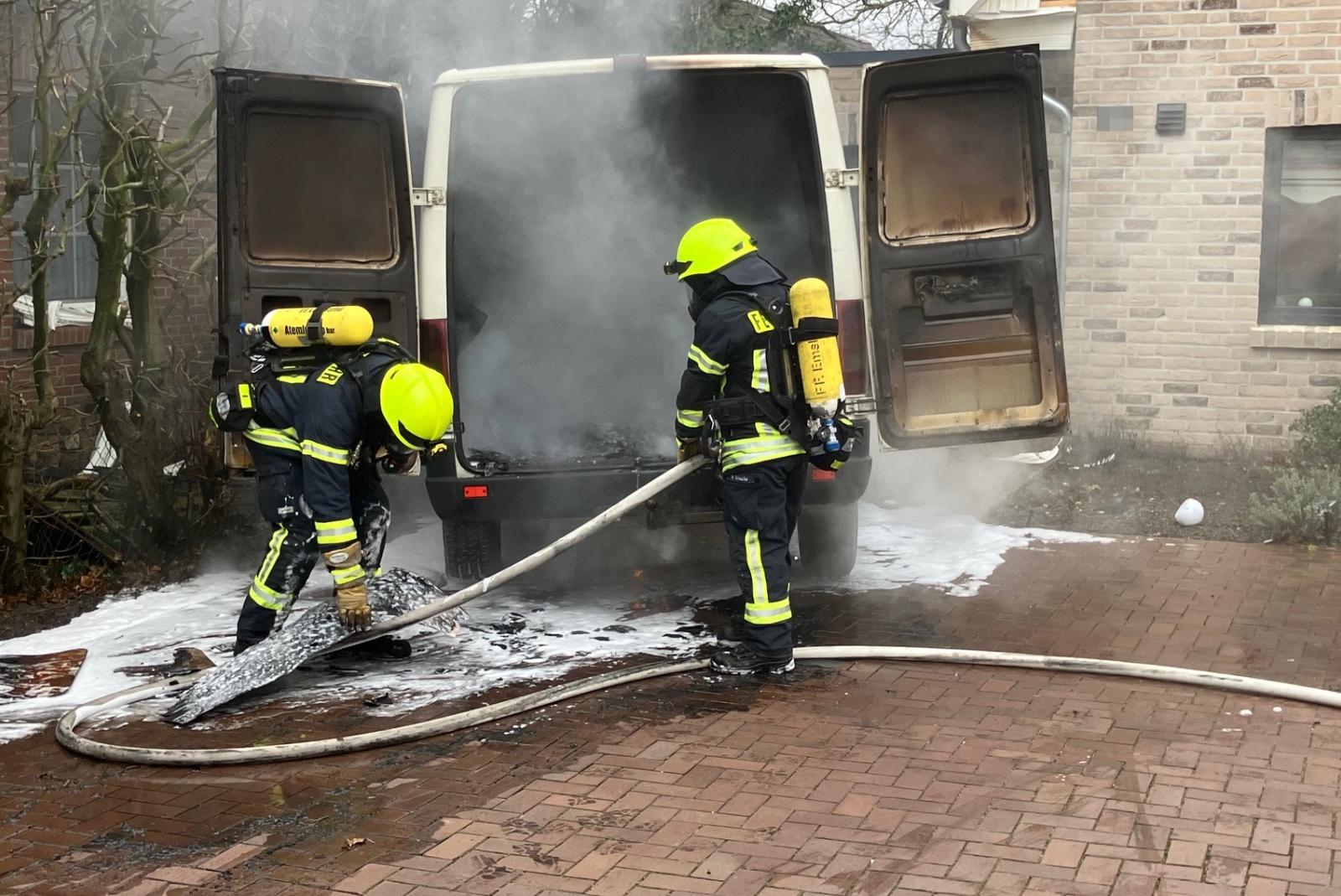 Ein abgestellter Kleintransporter ist am Sonntagvormittag gegen 10.30 Uhr an der Emdener Straße im Papenburger Ortsteil Aschendorf in Brand geraten. Bewohner hatten laut Polizei die starke Rauchentwicklung bemerkt, nachdem bereits Rauch in das benachbarte Gebäude gezogen war. Die Anwohner, die sich noch rechtzeitig in Sicherheit bringen konnten, alarmierten die Feuerwehr und warnten auch die Nachbarn. An beiden Objekten, zwischen denen der Transporter abgestellt war, entstand Sachschaden. Durch das Feuer und die starke Wärmestrahlung wurden eine Jalousie, der Dachüberstand und auch eine Eingangstür beschädigt.
