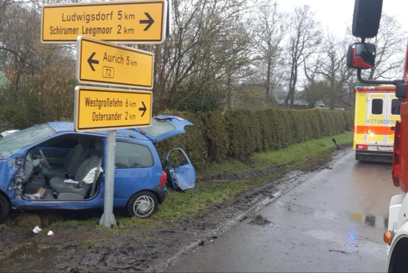 Eine eingeschlossene Person mussten Einsatzkräfte der Feuerwehren Aurich, Sandhorst und Holtrop am Mittwochvormittag aus ihrem Fahrzeug befreien. Der Mann war zuvor auf Höhe der Einmündung Zum Schirumer Leegmoor mit seinem Auto von der Timmeler Straße abgekommen und in die Vegetation am Fahrbahnrand geprallt. Aufgrund der ungünstigen Lage des Unfallfahrzeugs konnte der Verletzte laut Feuerwehr dies nicht aus eigener Kraft verlassen. Die angerückten Feuerwehrleute setzten kurzerhand hydraulisches Rettungsgerät ein, um die Fahrertür zu entfernen und so die Übergabe des Patienten an den Rettungsdienst zu ermöglichen. Der Mann kam ins Krankenhaus. Im Anschluss an die Rettungsmaßnahmen reinigten die Einsatzkräfte noch die leicht verschmutzte Fahrbahn und rückten nach gut einer Dreiviertelstunde wieder ab. Während des Einsatzes war die Timmeler Straße im Bereich der Unfallstelle zeitweise voll gesperrt.